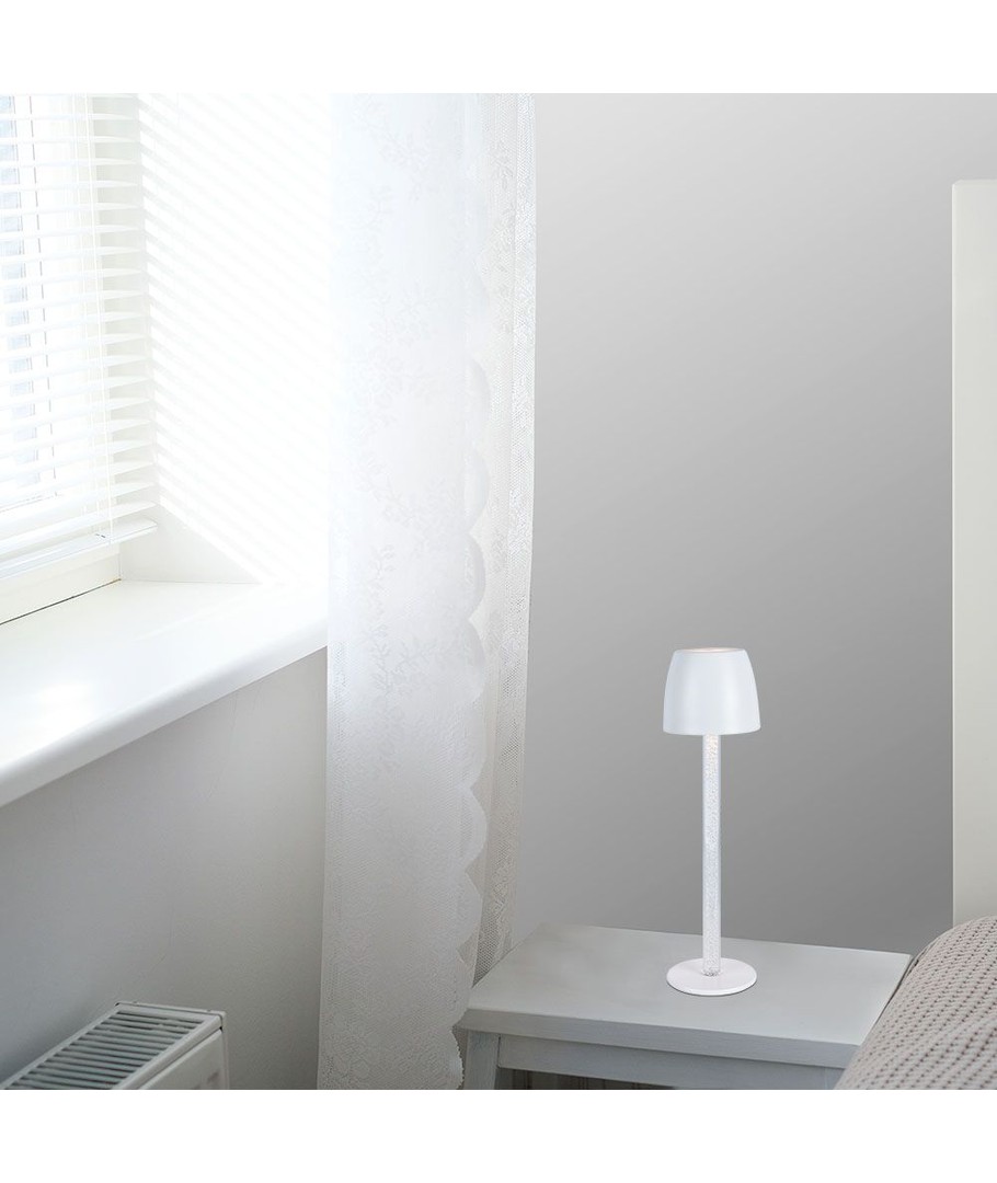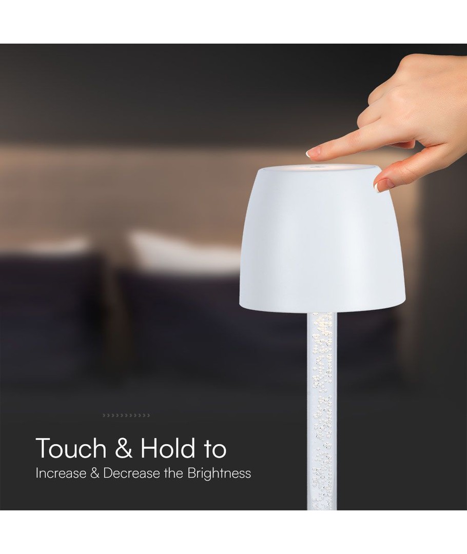 Med dimensjoner på 370 x 106 mm, er lampen kompakt og diskret, og passer perfekt på ethvert bord uten å være for dominerende. Den transparente stangen gir et moderne og stilrent uttrykk, mens den touch-dimbare funksjonen gjør det enkelt å justere lysstyrken etter behov.