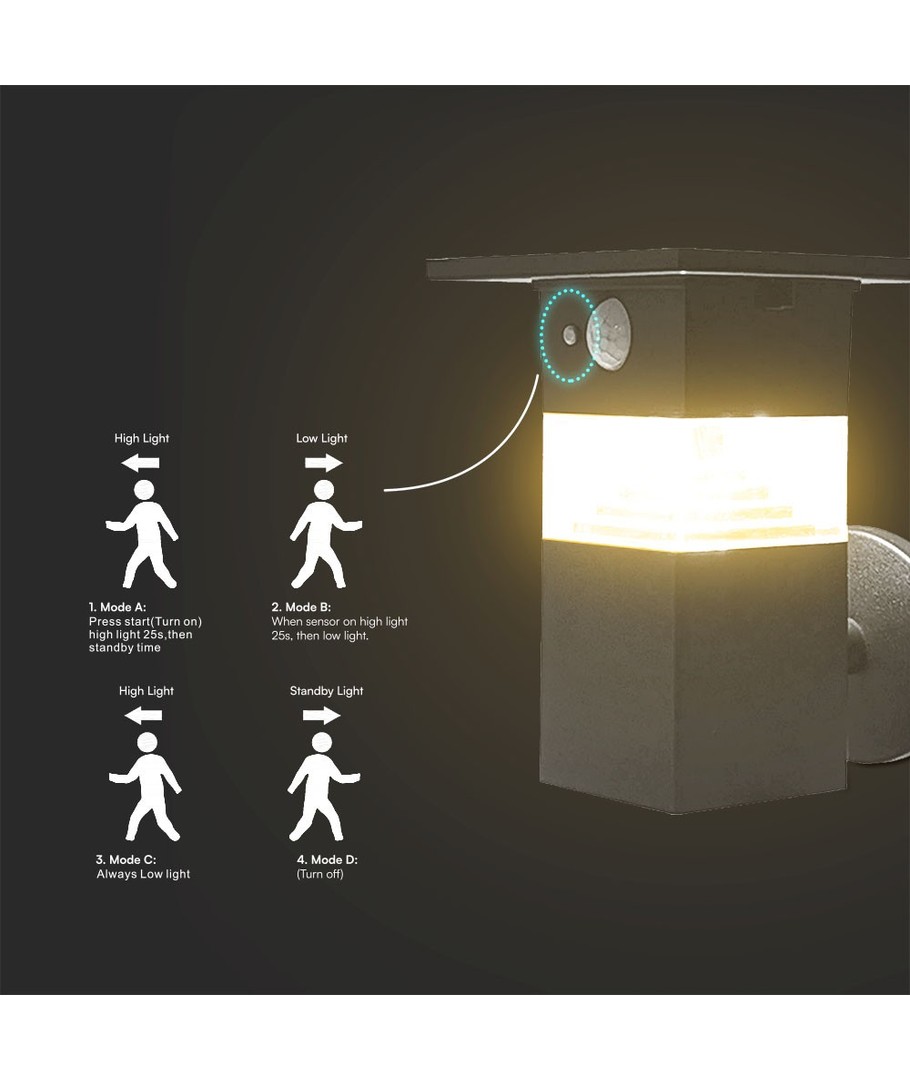 Med både funksjon og estetikk i fokus, er denne LED solcelle vegglampen det perfekte tillegget til å forbedre både sikkerhet og stemning i utendørsområdene dine.