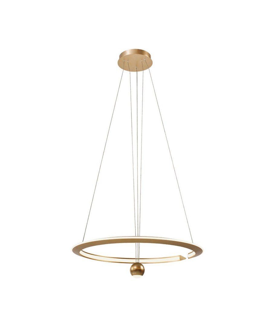 Med dimensjoner på 1200 x 620 mm, passer denne lampen godt inn i rom der du ønsker å gjøre et inntrykk. Den børstede gullfinishen gir en luksuriøs touch, og designen har en moderne eleganse.