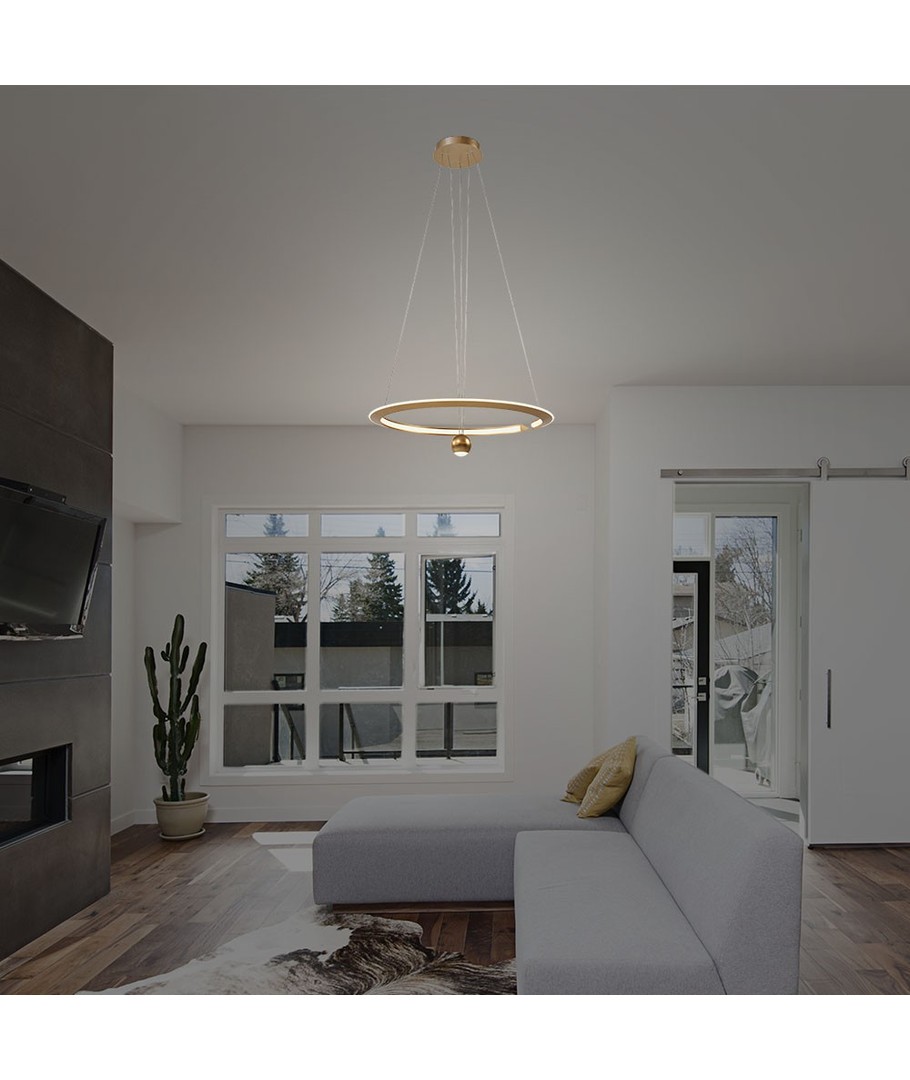 Denne moderne LED pendellampen kombinerer stil og funksjonalitet og er et perfekt valg for både hjem og kontor. Med sin børstede gullfinish gir den et sofistikert preg til ethvert rom.