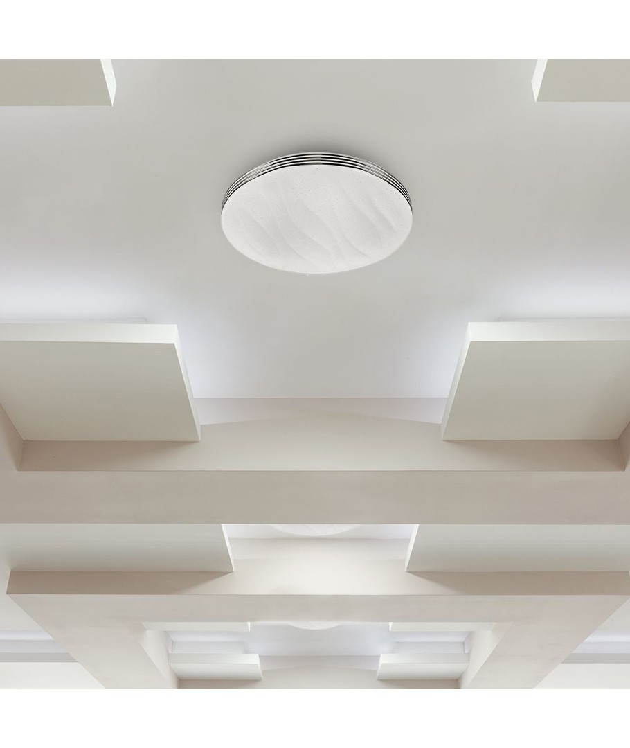 Denne stilfulle LED taklampen kombinerer moderne design med funksjonalitet for å gi ditt hjem den perfekte atmosfæren. Lampen er ideell for stuer, soverom eller kontorarealer, med sitt elegante bølgedeksel som gir et sofistikert preg til ethvert rom.
