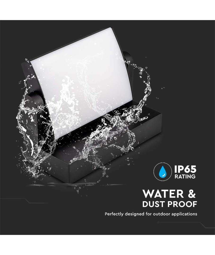 Det slitesterke designet med IP65-klassifisering gjør lampen ideell for utendørsbruk, fordi den kan motstå både vannsprut og regn. En praktisk funksjon er at lampen har en justerbar vinkel, slik at du enkelt kan rette lyset dit det trengs mest.