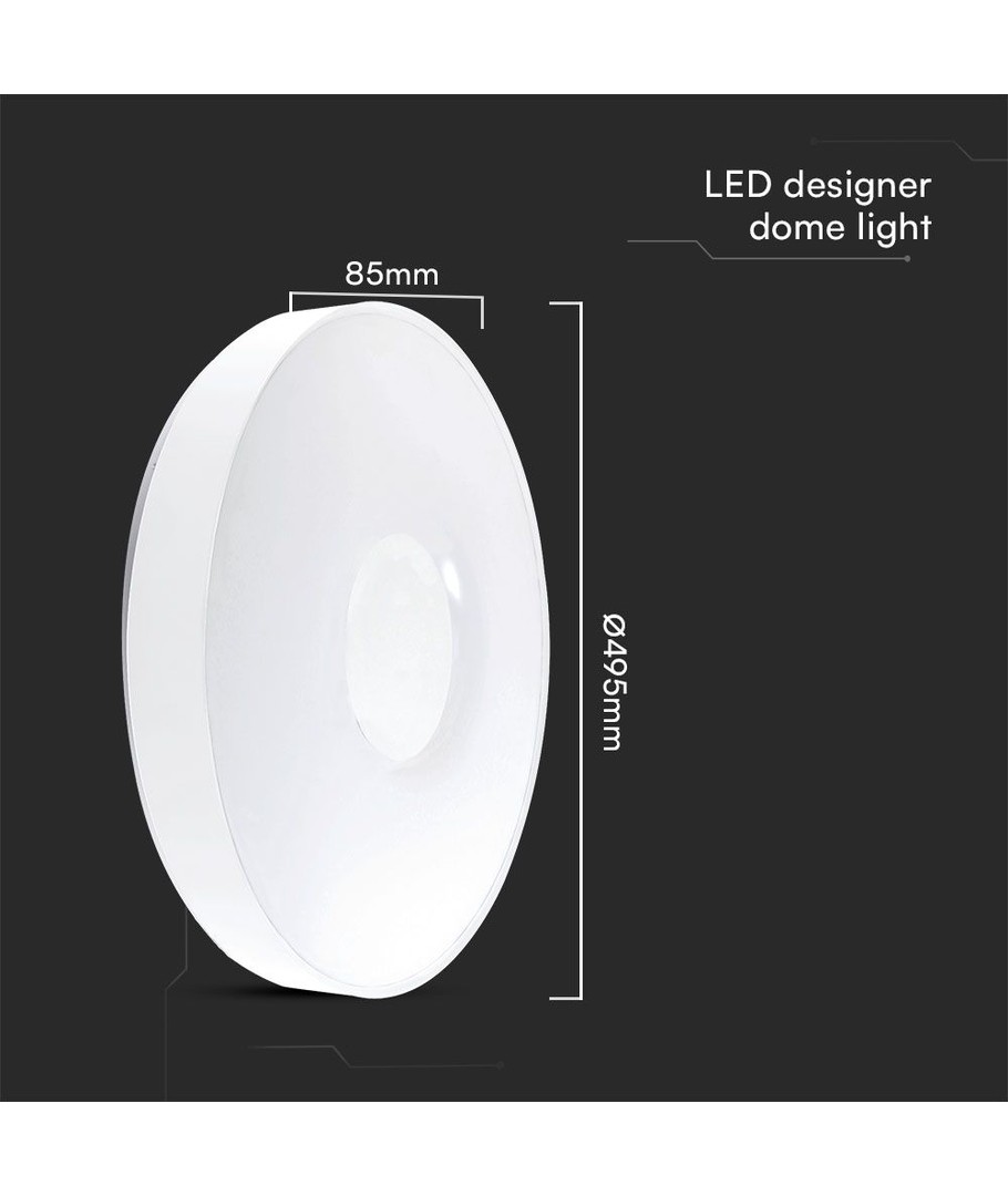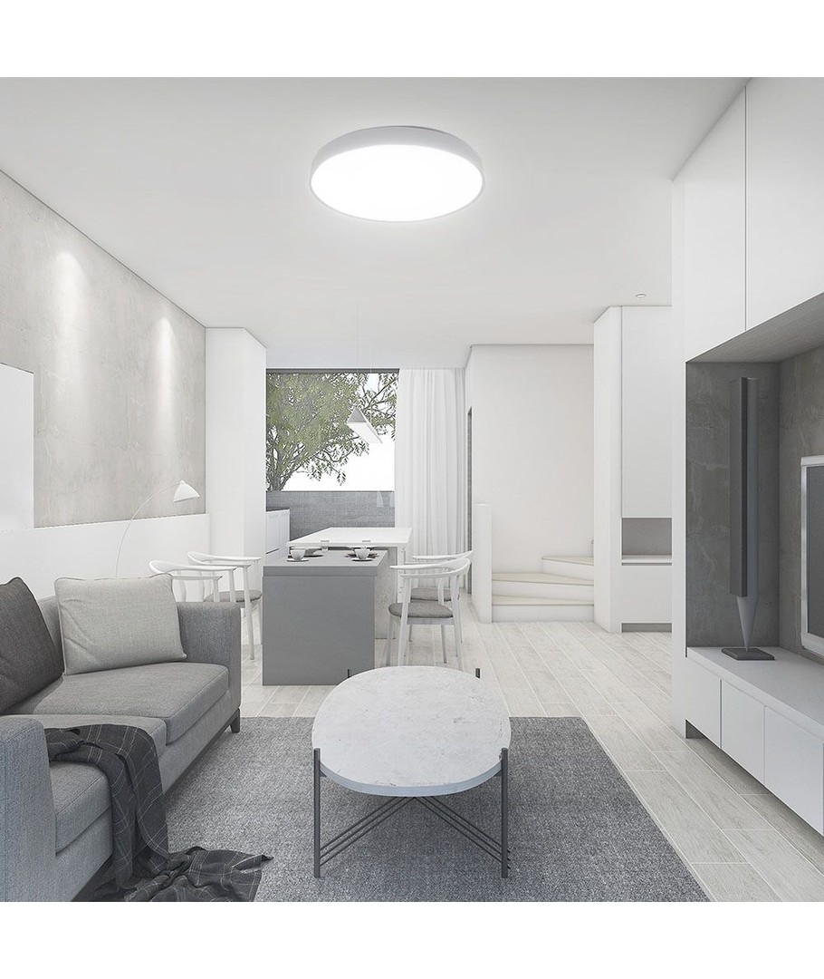 Med sitt hvite deksel, komplementerer denne designerlampen ethvert interiør, fra moderne minimalistisk til klassisk elegant. Den diskré dimensjonen på 495 x 85 mm gjør at den elegant smelter inn i ulike rom uten å dominere.