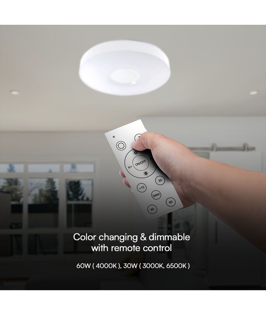 Taklampen leveres med en praktisk fjernkontroll som gir deg full kontroll over lysstyrke og lyssetting, direkte fra din komfortable plass. Den dimbare funksjonen lar deg enkelt tilpasse lyset til ulike situasjoner og behov.