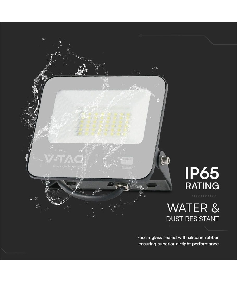 Med sitt svarte hus og grå matte glass passer projektøren perfekt i ulike miljøer, både innendørs og utendørs. Takket være IP65-klassifiseringen, er denne projektøren designet for å motstå vannsprut og regn, slik at den er ideell for utendørs belysning.