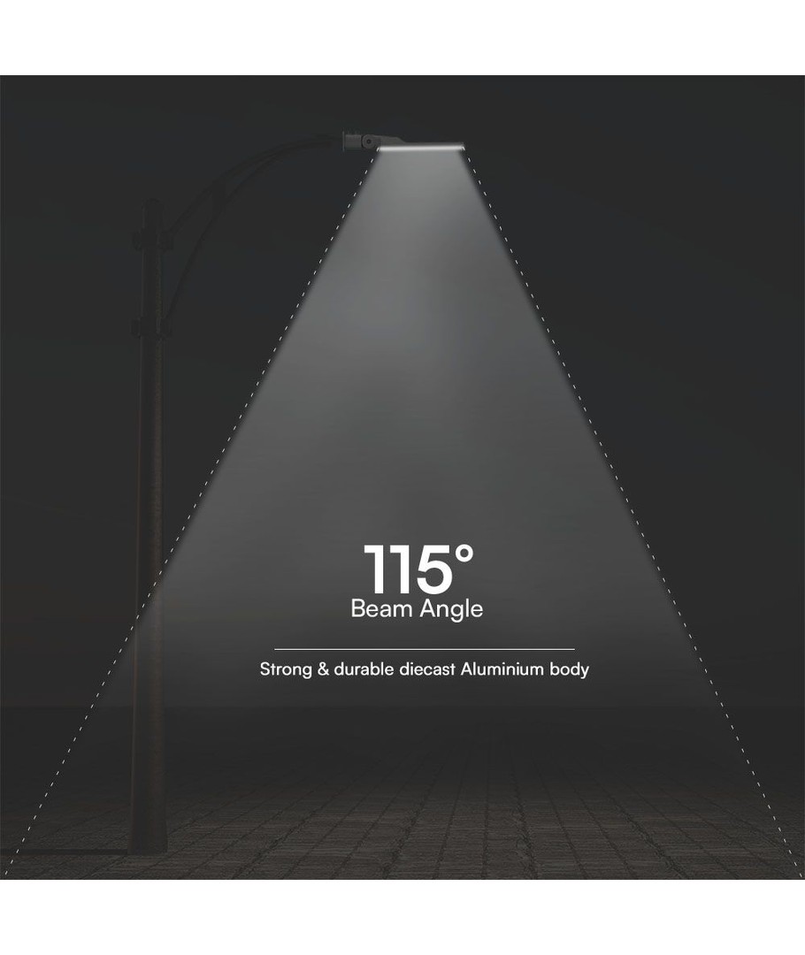 Med en imponerende lysstyrke på 20250 lumen og en bred lysspredning på 115 grader, sikrer dette LED-lyset en jevn fordeling som dekker et stort område. Perfekt for opplysing av gater, parkeringsplasser, eller åpne plasser hvor lysutbytte og sikkerhet er viktig.