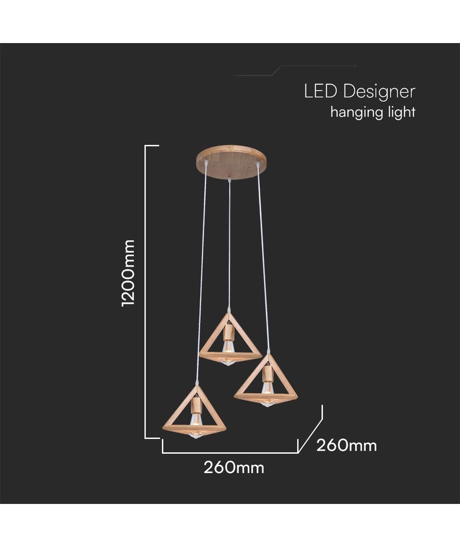 3xE27 Designer pendeloppheng i tre - Brun, 26x26cm, 1m ledning, uten lyskilde V-TAC Utvid