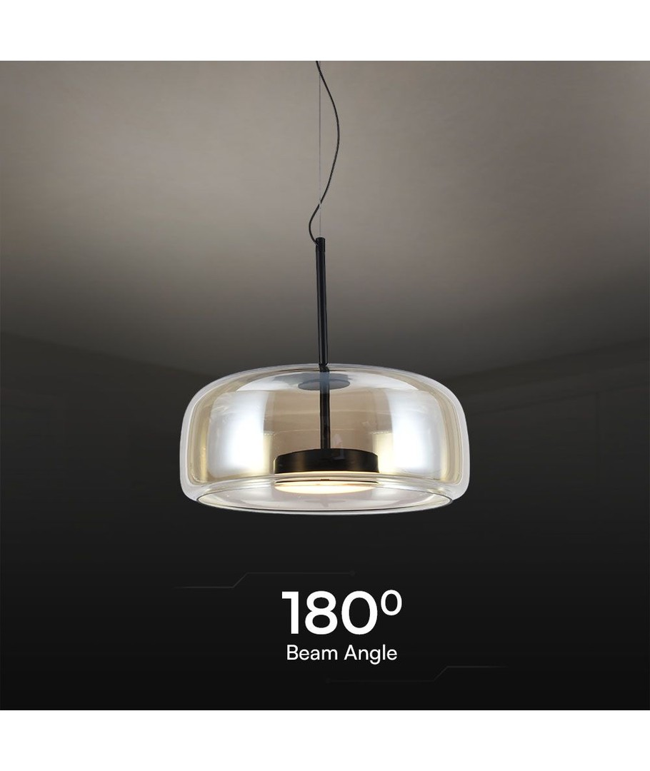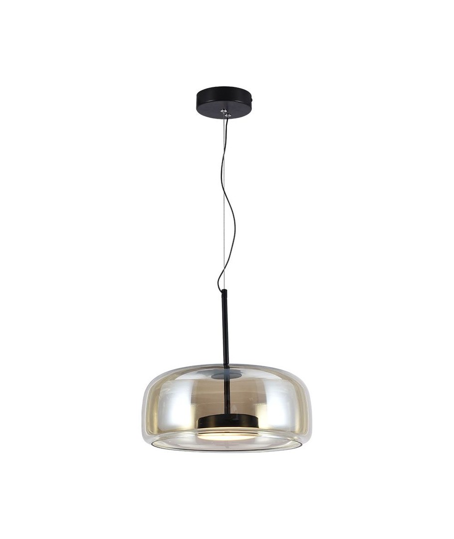 Legg til et snev av eleganse i hjemmet ditt med denne designerlampen laget av en kombinasjon av metall og glass. Med et strømeffekt på 6W og en lysstyrke på 750 lumen, sørger denne pendelen for en optimal lysopplevelse i ethvert rom.