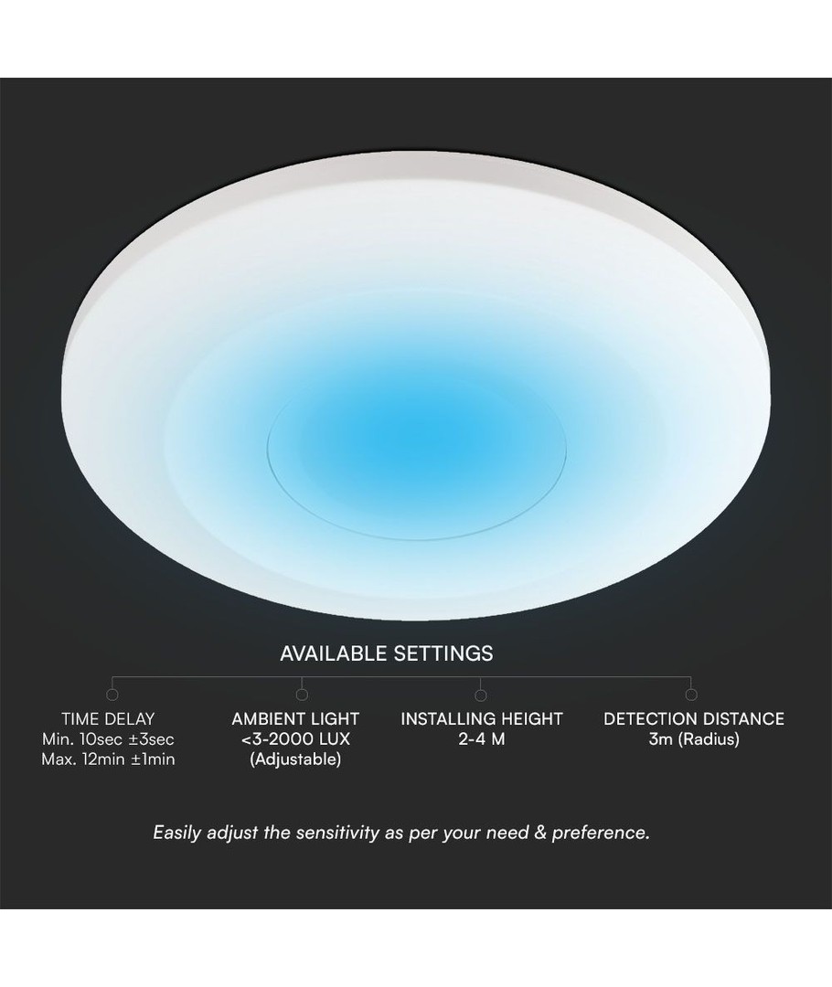 - Sensoravstand: Registrerer bevegelse på opptil 3 meters avstand.