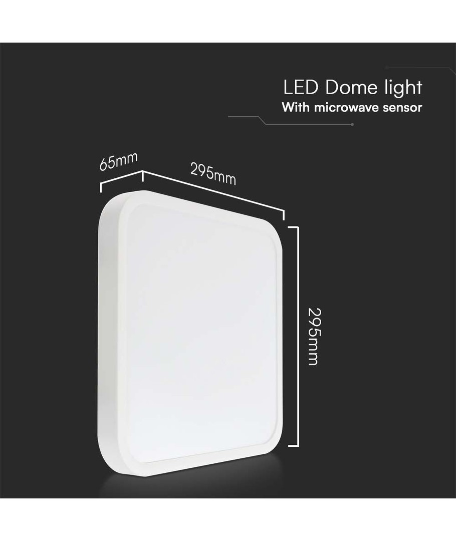Dette dome-lyset har en firkantet hvit ramme som passer inn i de fleste moderne interiører. Med dimensjoner på 295 x 65 x 295 mm, er det lett å plassere i ulike rom uten å ta opp for mye plass.