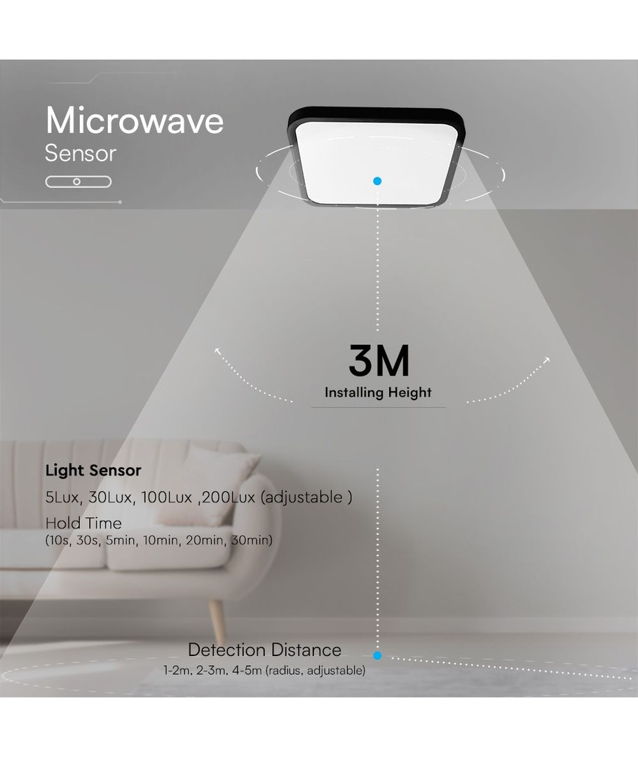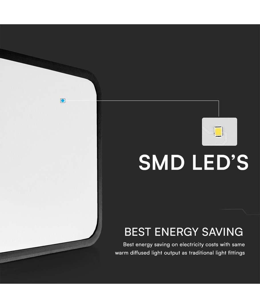 Produktets mål er 420 x 65 x 420 mm, og det kommer med en integrert lyskilde, noe som gjør det enkelt å installere. Den stilige svarte rammen gir et moderne preg til ethvert rom.