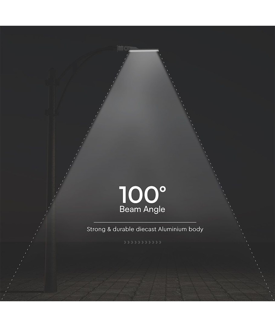 Med denne 100W gatelampen får du en pålitelig og energieffektiv belysningsløsning for dine utendørs behov.