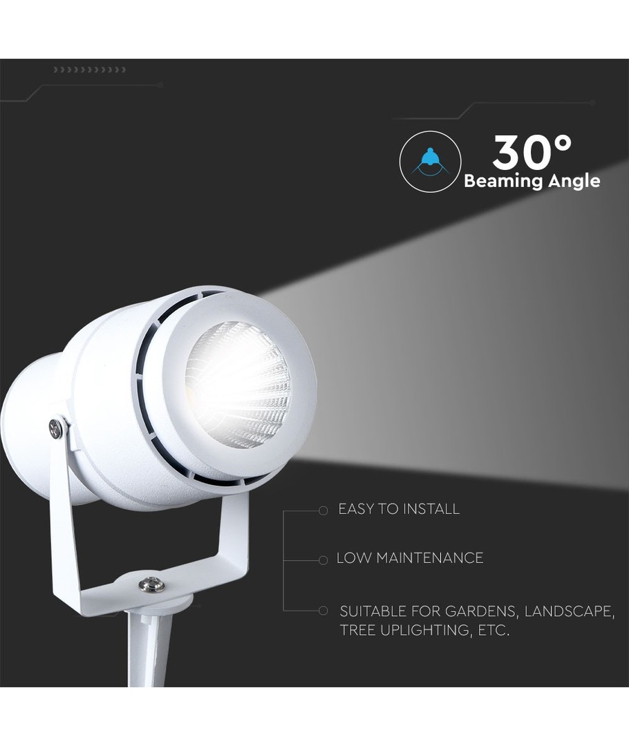 Spesifikasjoner:Med en lysstyrke på 720 lumen og et fokusert lys på 30 grader, kan du enkelt lyse opp de elementene i hagen som fortjener å bli fremhevet. Den høye lyskvaliteten, med en RA-verdi på 80-85, gir et naturlig lys som viser frem alle farger på en vakker og genuin måte, perfekt for alle dine hagebelysningsbehov.