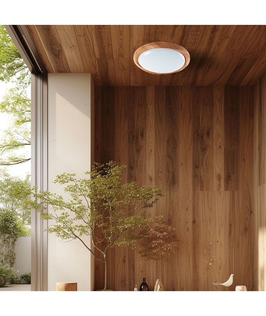 Den innovative trekonstruksjonen tilfører en naturlig og varm følelse til rommet, mens det elegante syklon dekselet gir et moderne preg. Kombinasjonen av disse materialene sikrer ikke bare et stilig utseende, men også en holdbar og langvarig belysningsløsning.