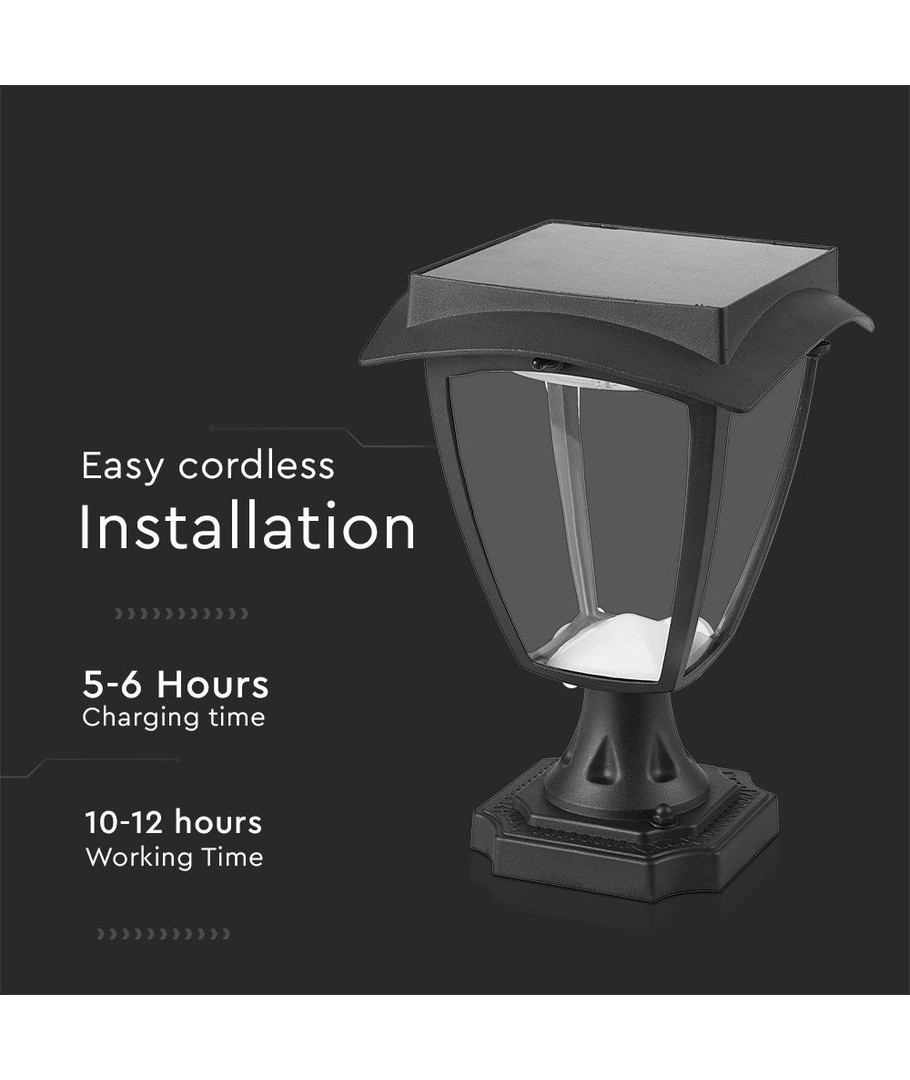 Oppgrader ditt uteområde med denne stilige LED Solcelle Standerlampen fra V-Tac Pro serien. Designet i en elegant matt svart finish, gir denne lampen både funksjonell og estetisk belysning til uteområder.