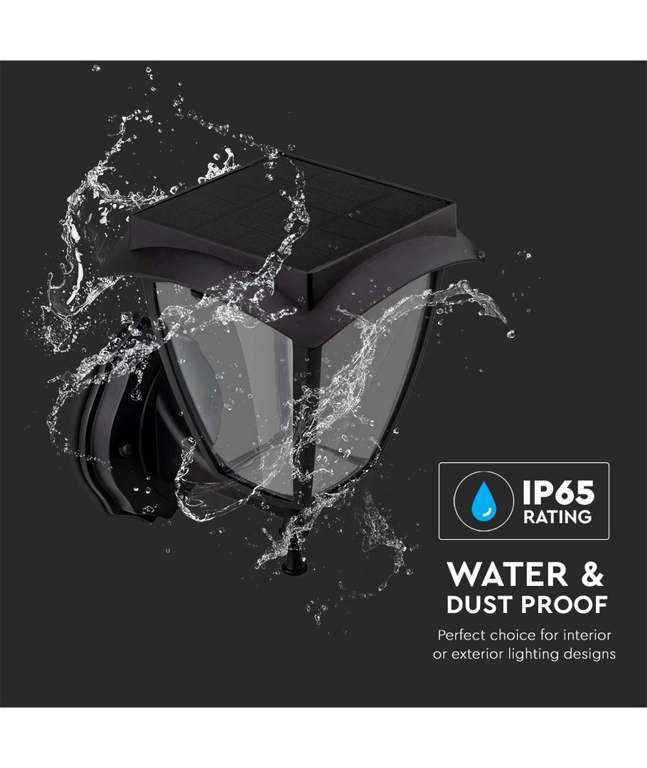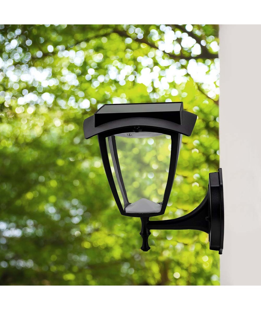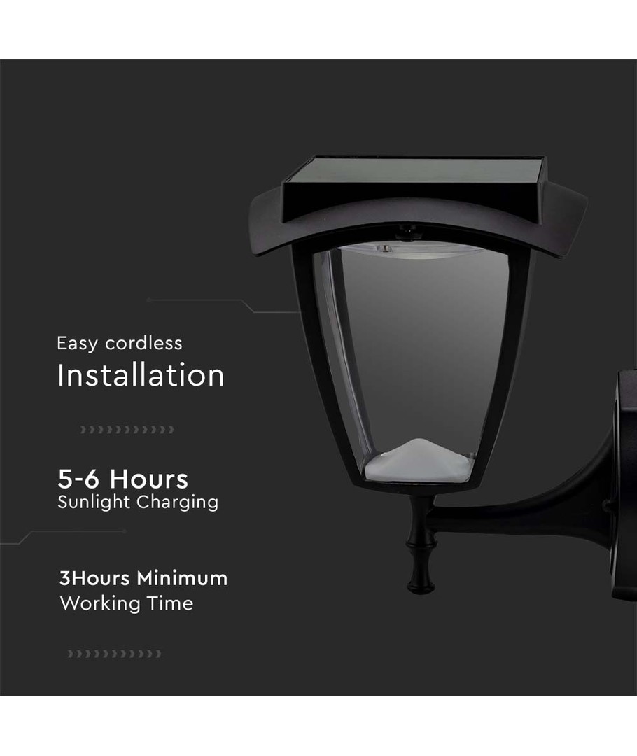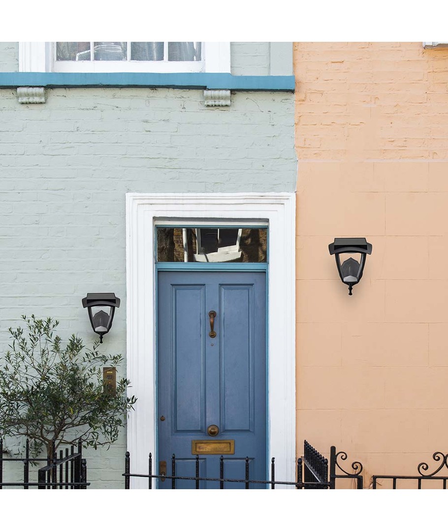 LED solcelle vegglampe i elegant matt svart design for praktisk og energieffektiv belysning.