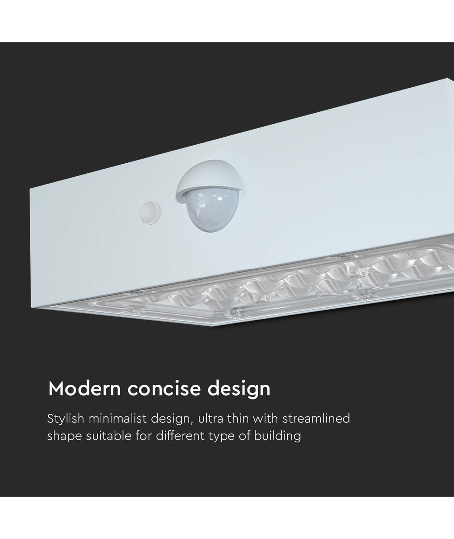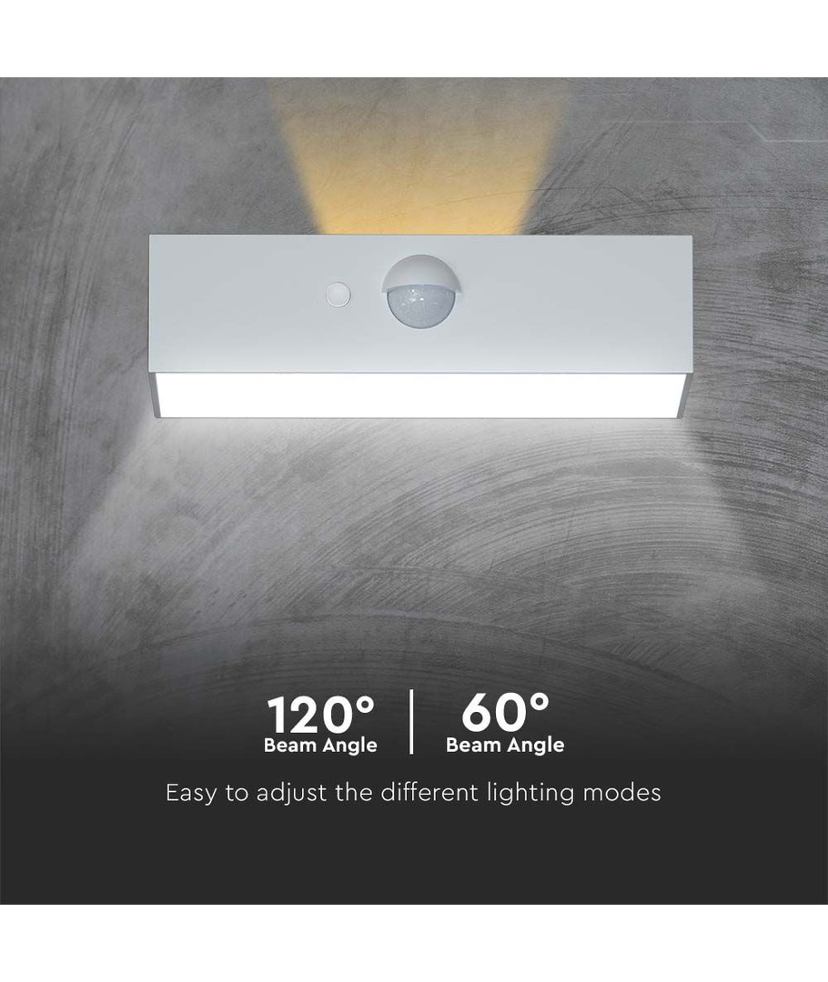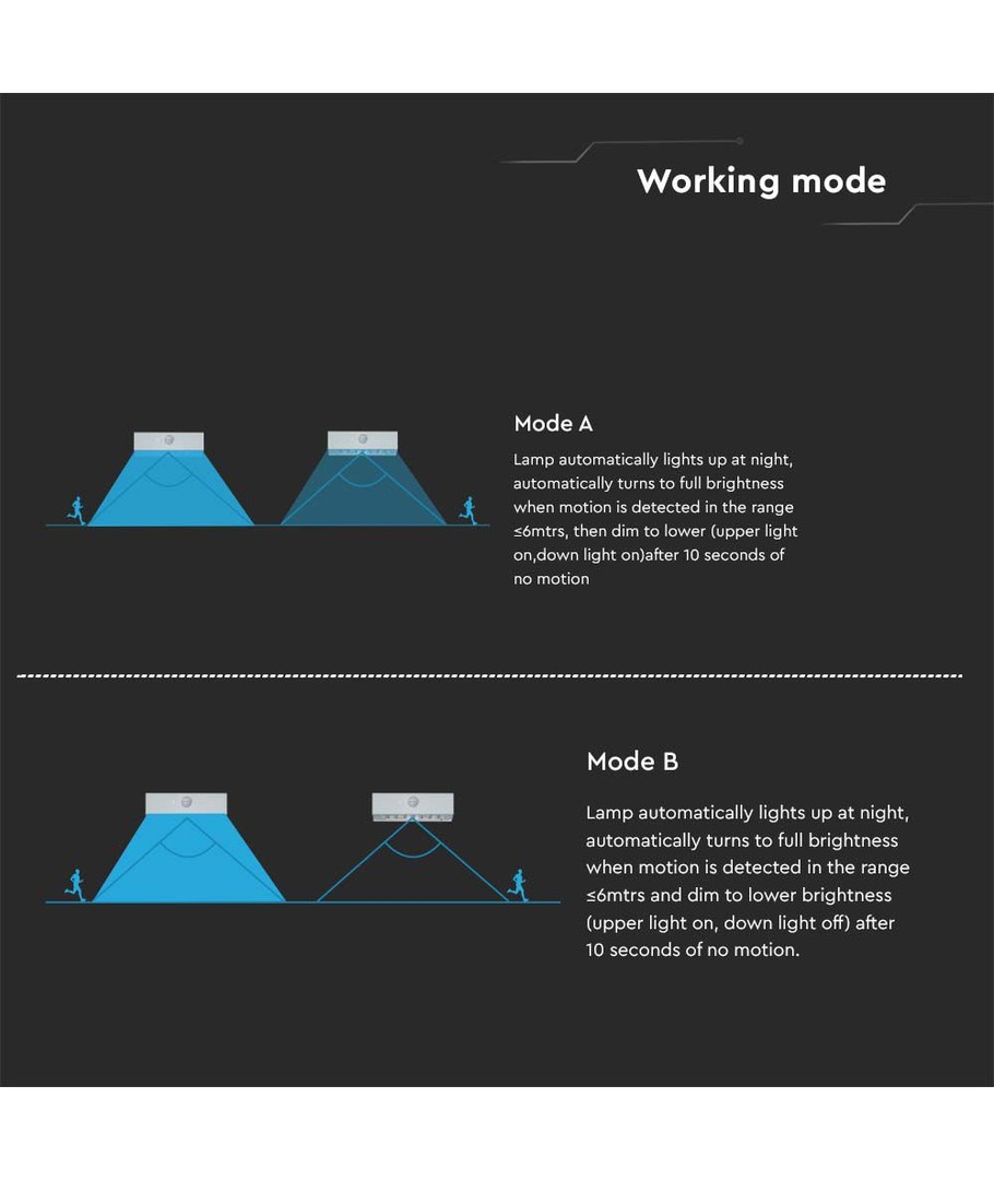 Denne vegglampen krever ikke eksterne strømtilkoblinger, da den er utstyrt med et solcellepanel som lader det innebygde litiumbatteriet. Dette gjør det enkelt å installere lampen i ønsket område uten bekymringer for strømkabler.