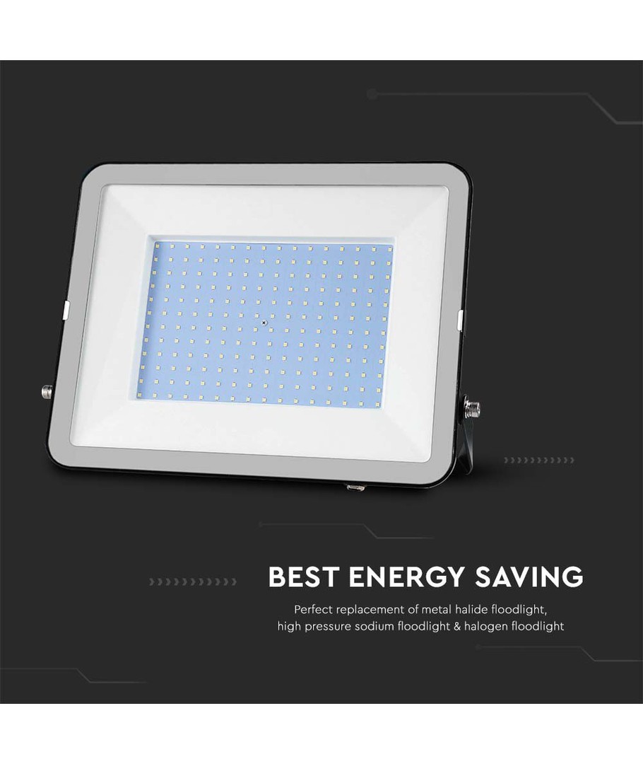 Opplev kvalitetslys med vår 200W projektør, utstyrt med en Samsung LED-chip for optimal ytelse. Denne projektøren gir imponerende 20000 lumen, noe som sikrer intens belysning for ethvert utendørsområde.
