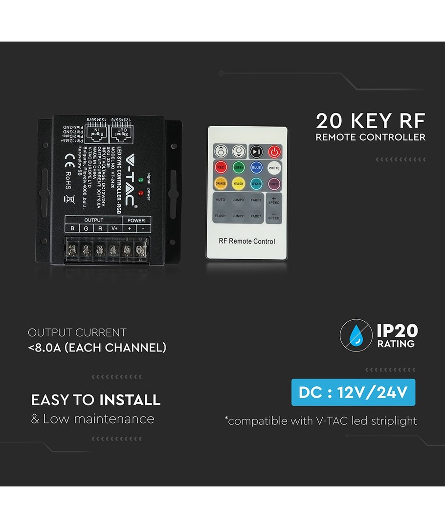 288W LED RGB Controller med 20 taster RF fjernkontroll gir deg enkel styring over dine LED-lysstriper.
