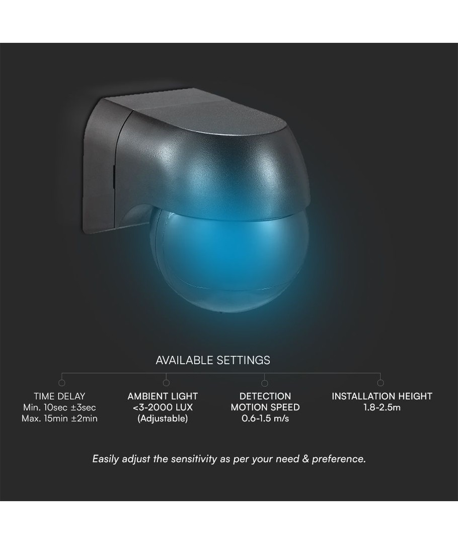 Opplev enkel installasjon og økt sikkerhet med denne stilrene veggsensoren. Sensoren er ideell for både bolig og kommersiell bruk, og kan bidra til å redusere energiforbruket ved å aktivere lys kun når bevegelse oppdages. Enten du ønsker å øke sikkerheten ved inngangspartiet ditt, eller forbedre belysningen i fuktige områder som bad eller garasje, er denne sensoren et utmerket valg.
