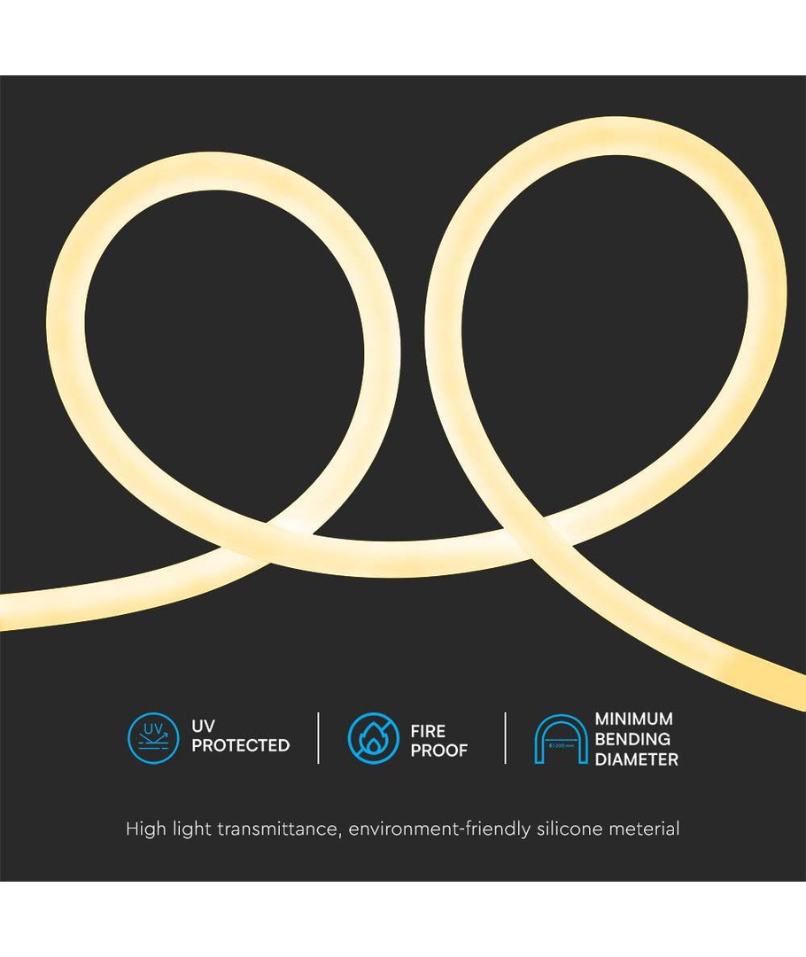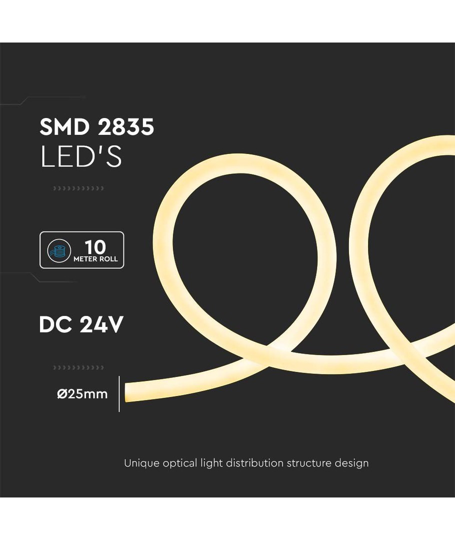 Transformér interiøret ditt med den allsidige 12W/m Neon Flex 3000K 24V, levert i en praktisk 10 meter rull. Lys opp rommet ditt med en varm hvit fargetone på 3000K som tilbyr en beroligende, koselig atmosfære, perfekt for alle dine belysningsbehov.