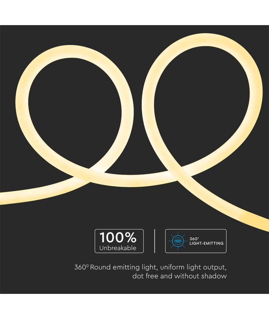 Med en imponerende høy spredning på 360 grader, sikrer denne neon flexen at lyset fordeles jevnt, uavhengig av vinkelen. Dette gjør den ideell for både funksjonell belysning og dekorative lysløsninger.