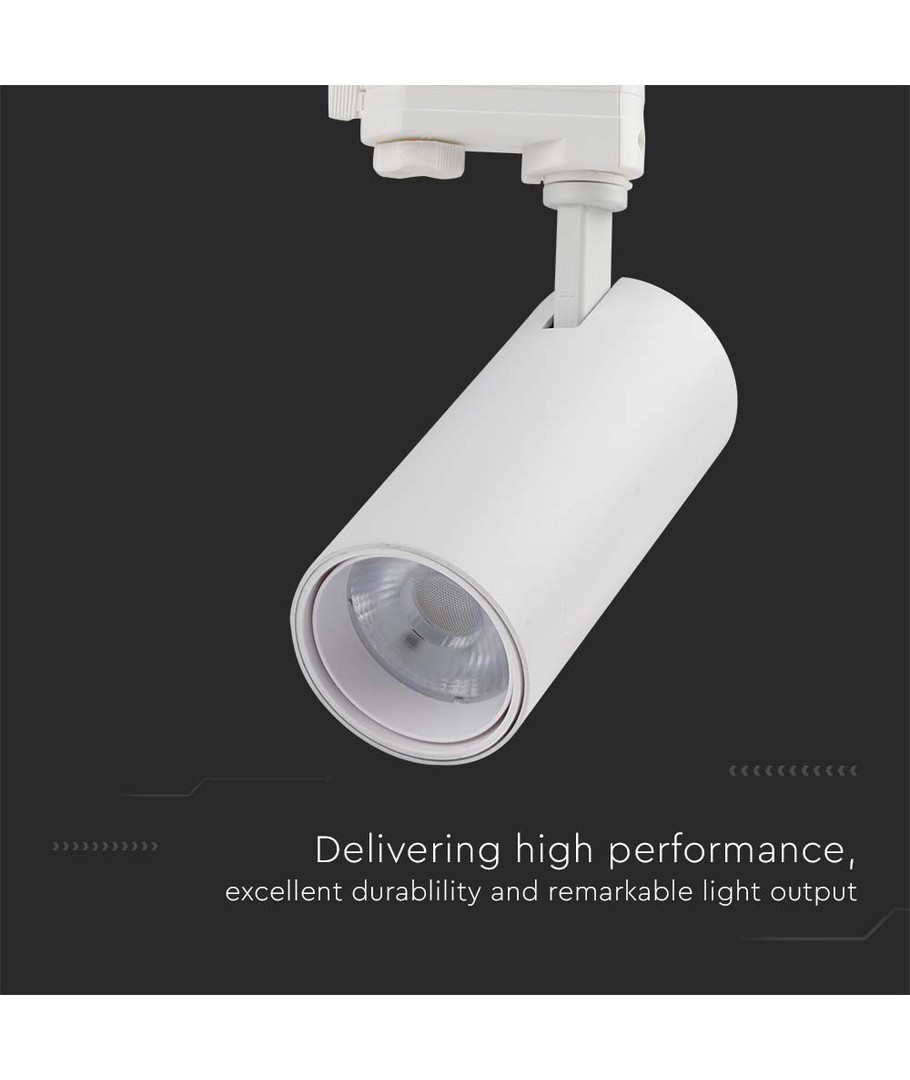 Opplev belysning med presisjon og kvalitet med vår VT-47030 LED skinnespot. Denne kraftige lampen gir deg 30W lysstyrke kombinert med et stilrent design i hvitt hus, hvit reflektor og hvit bakdeksel. Enten du ønsker å fremheve bestemte områder i et galleri, butikk eller hjem, gir den de rette forutsetningene.
