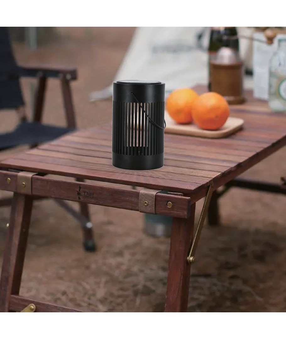 Lampen er laget av solid metall og kommer i en elegant sort farge, noe som gjør den til et stilig tillegg til enhver interiøroppsett. Det praktiske håndtaket gjør det enkelt å flytte lampen rundt etter ønske. Med dimensjoner på 220 x 120 mm, passer den perfekt på de fleste bord og flater.