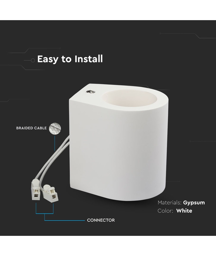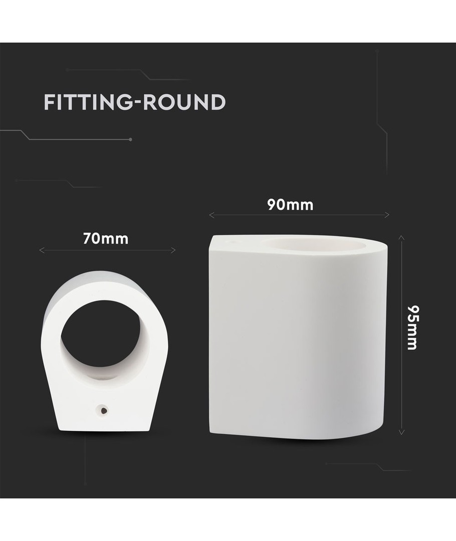Gypsum, rund, Ø10cm, hullmål Ø10,3cm, hvit