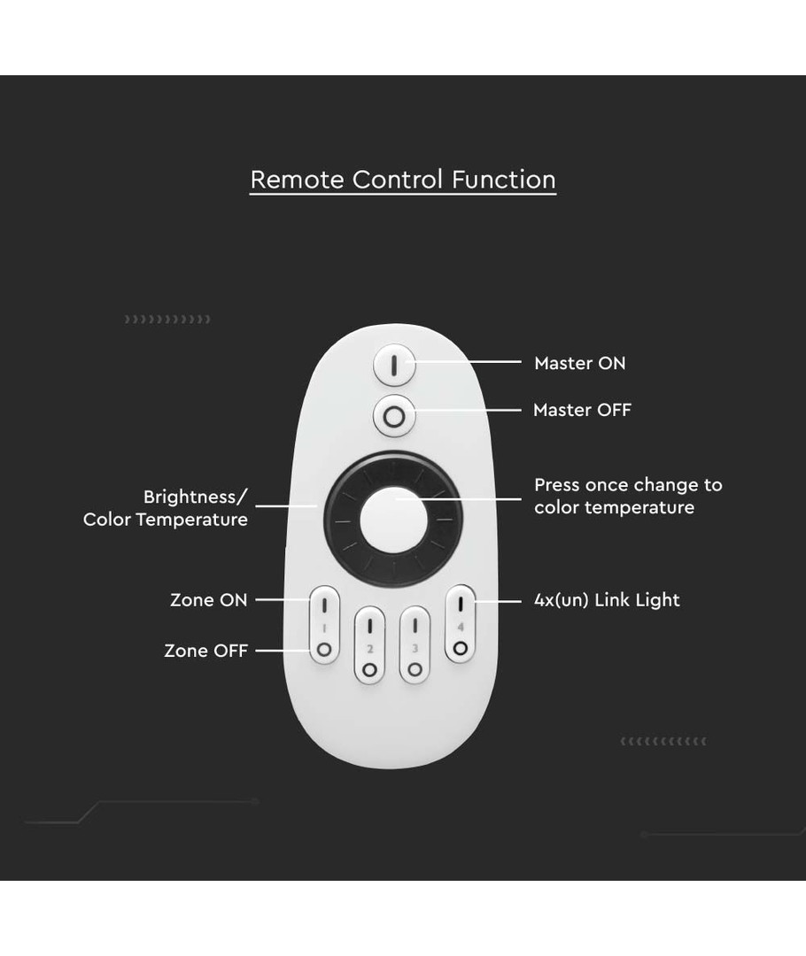 Vt-2436 fjernkontrollen tilbyr enkel kontroll over lysinnstillingene dine i flere soner.