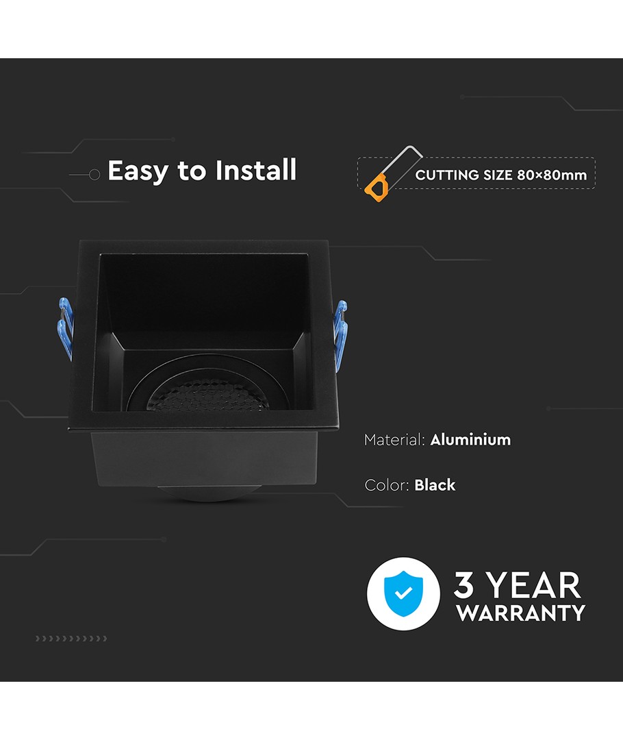 Oppdag den stilige og moderne Vt-9001sq lampen, designet for å gi hjemmet ditt et elegant lys. Denne lampen er utstyrt med en GU10 sokkel og er konstruert av høykvalitets aluminium, som sikrer både holdbarhet og lang levetid.