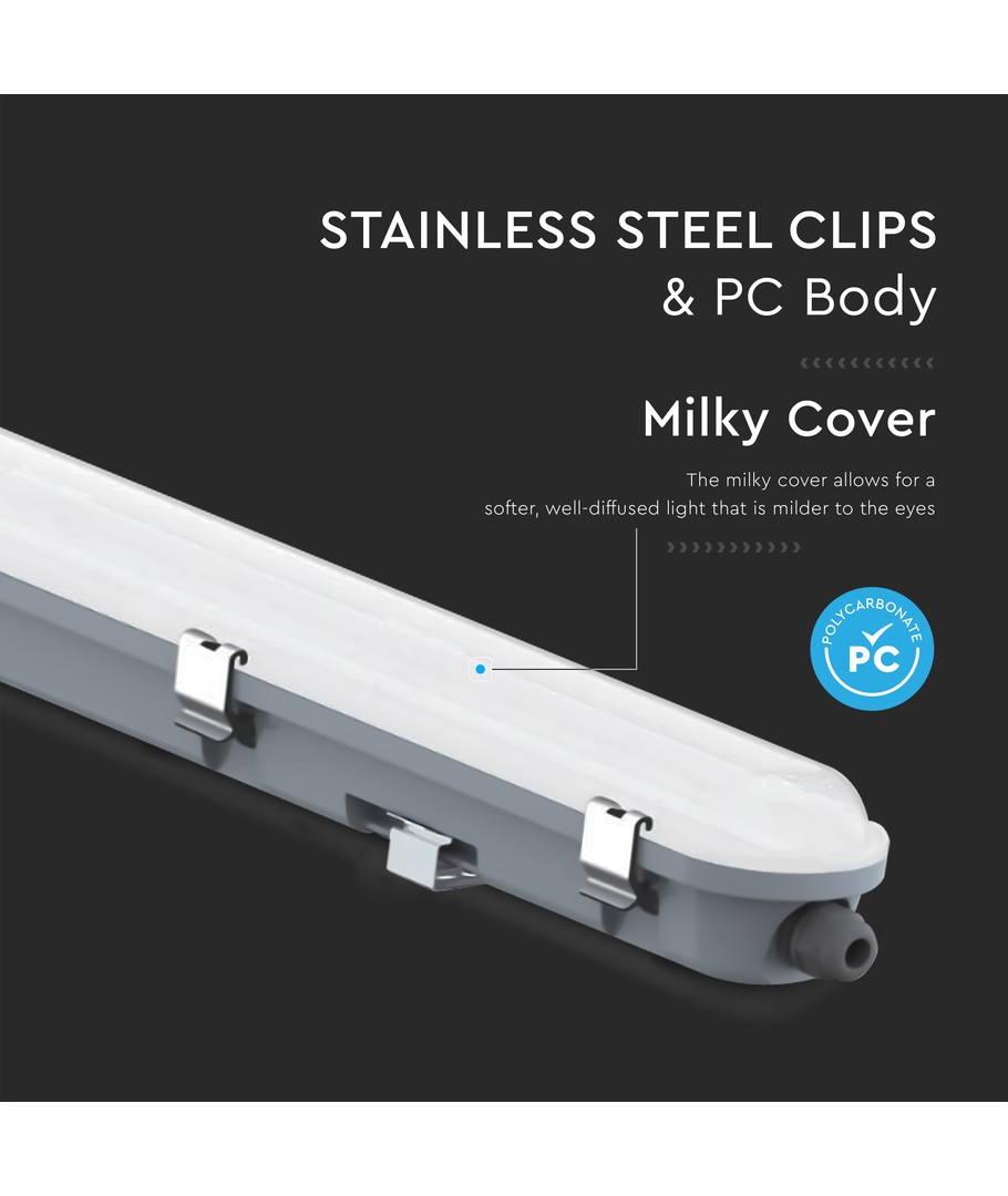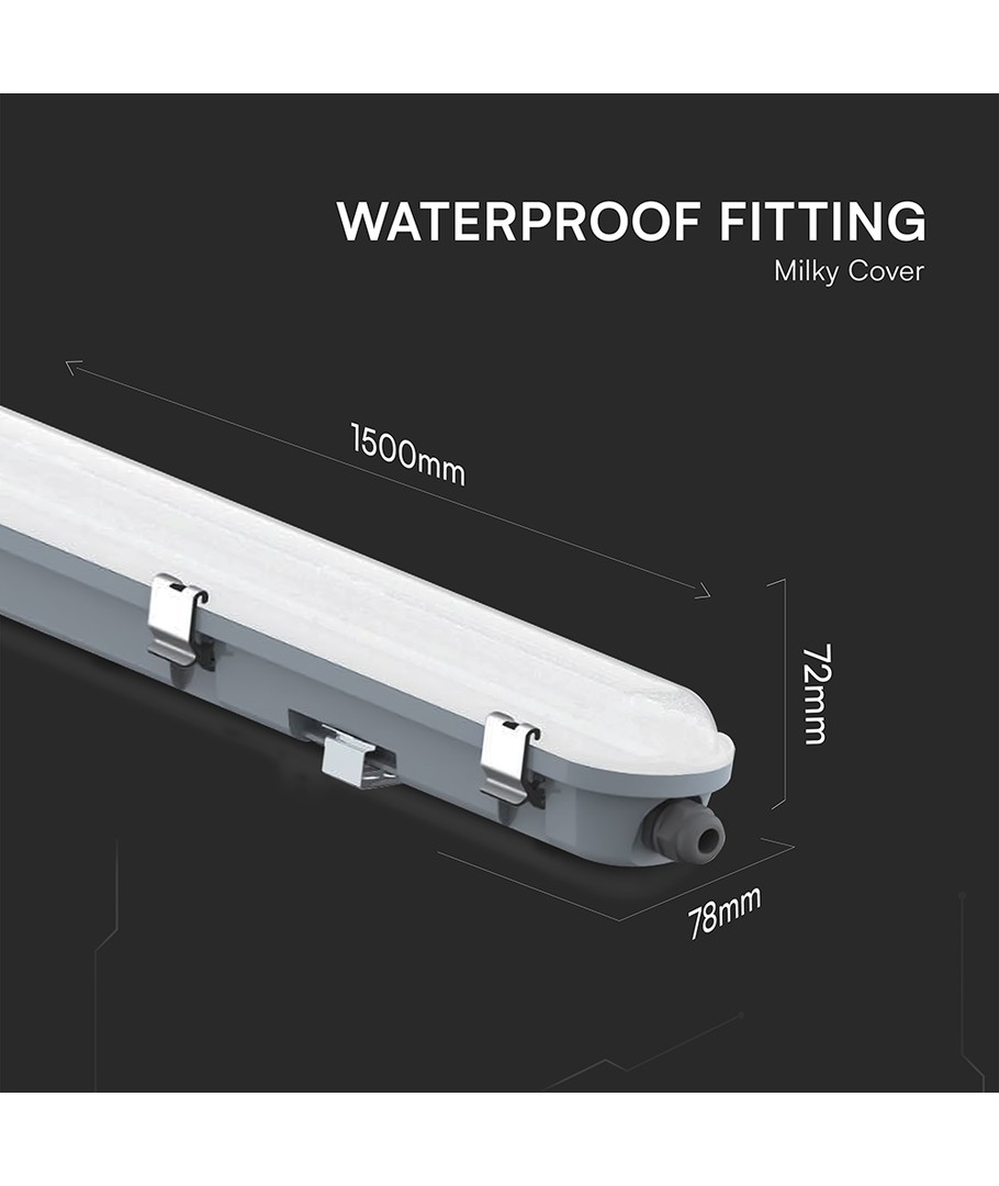 Denne 150 cm LED-armatur er ideell for både innendørs og utendørs bruk, takket være sin robuste og vanntette konstruksjon. Med en effekt på 48W, gir armaturen en kraftig belysning på 5760 lumen, perfekt for omgivelser som krever godt lys.