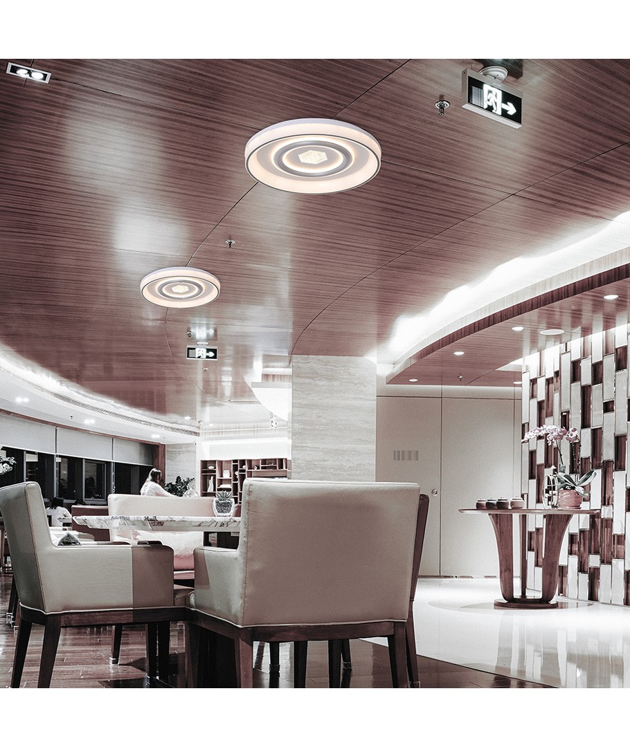 Oppdag en ny dimensjon av stil og funksjon med vår dekorative taklampe. Denne lampen kombinerer moderne teknologi med elegant design, ideell for å gi ethvert rom et lysløft. Med en lysstyrke på 4480 lumen og en lysspredning på 160 grader, sikrer denne lampen en jevn og effektiv belysning over hele området.