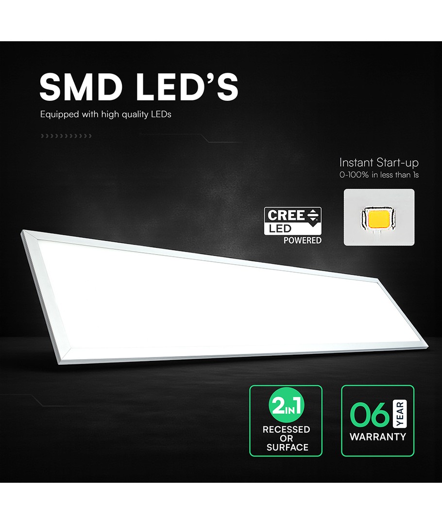 Oppnå optimal belysning med vår 1200x300mm VT-6147 panel som leverer 40W kraft og en imponerende lysstyrke på 4400 lumen. Med en bred lysspredning på 110 grader, sikrer dette panelet en jevn og effektiv fordeling av lyset, perfekt for både hjem og arbeidsplass.