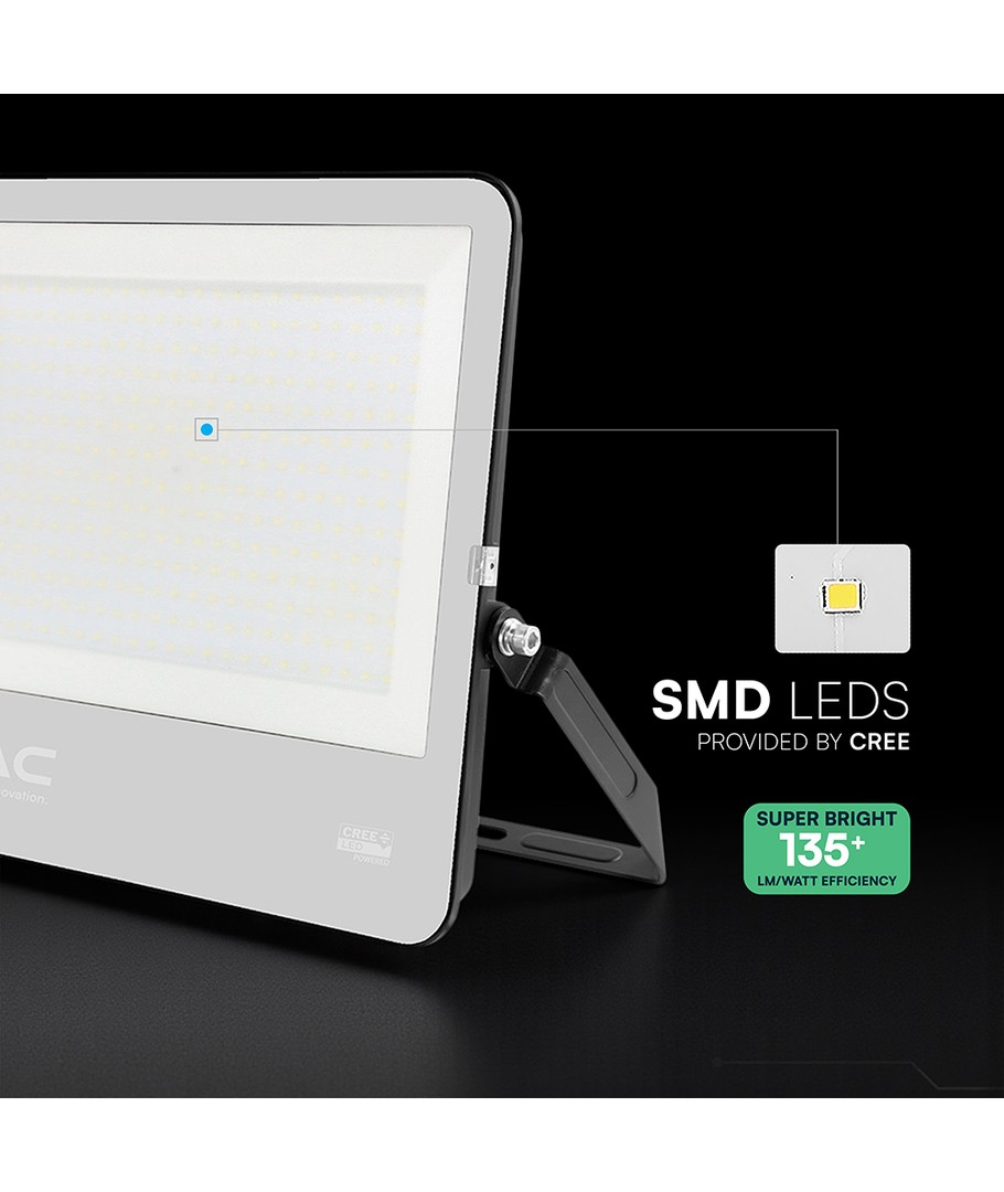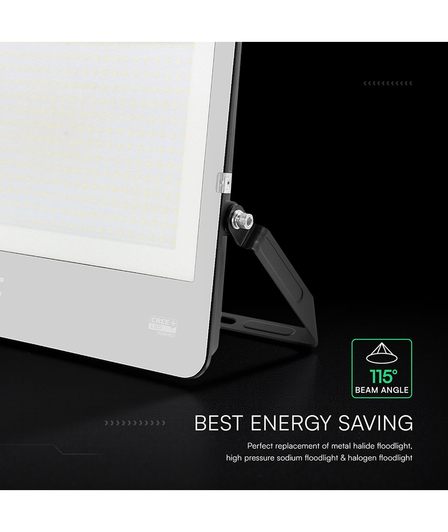 Denne høyeffektive LED projektøren på 300W bruker Cree-chip for optimal ytelse. Med en lysstyrke på 40,500 lumen og en lysspredning på 115 grader, sikrer den god og jevn lysfordeling. Med sin imponerende lysutbytte på 135 lumen per watt, er denne projektøren ideell for en rekke belysningsbehov.