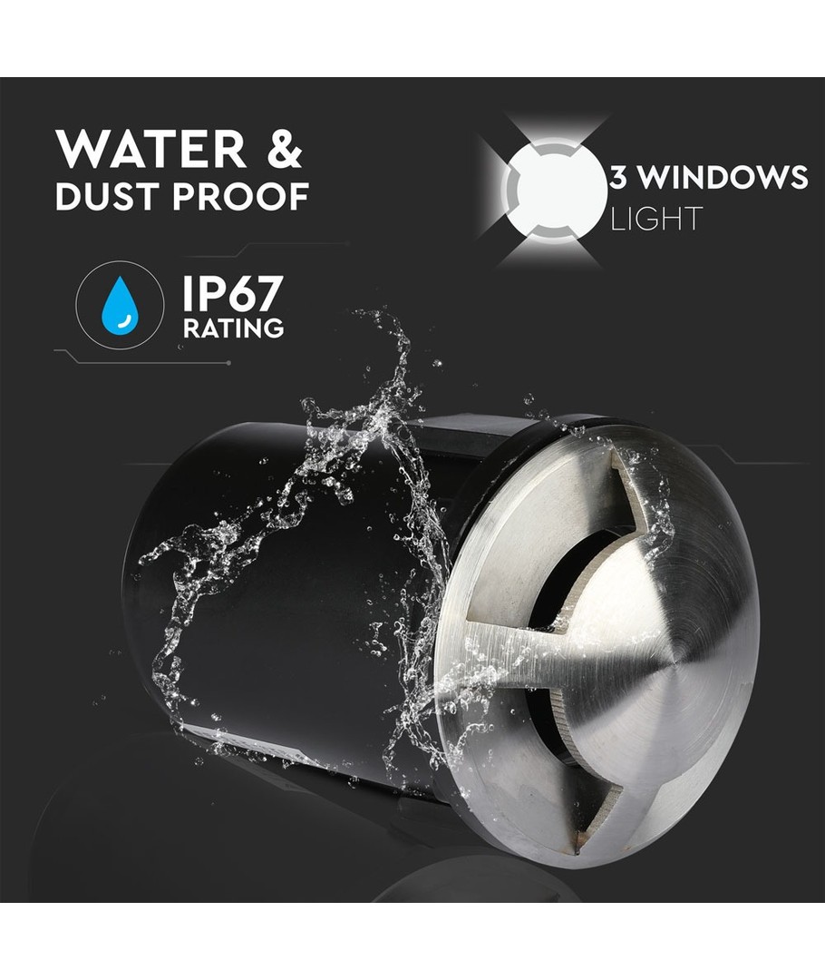 Oppgrader ditt utendørsområde med denne stilige nedgravningsspotlampen. Med sitt moderne design og funksjonalitet er den perfekt for å skape stemningsfull belysning. Denne modellen har tre vinduer for optimal lysspredning, noe som gir et behagelig og innbydende lys.