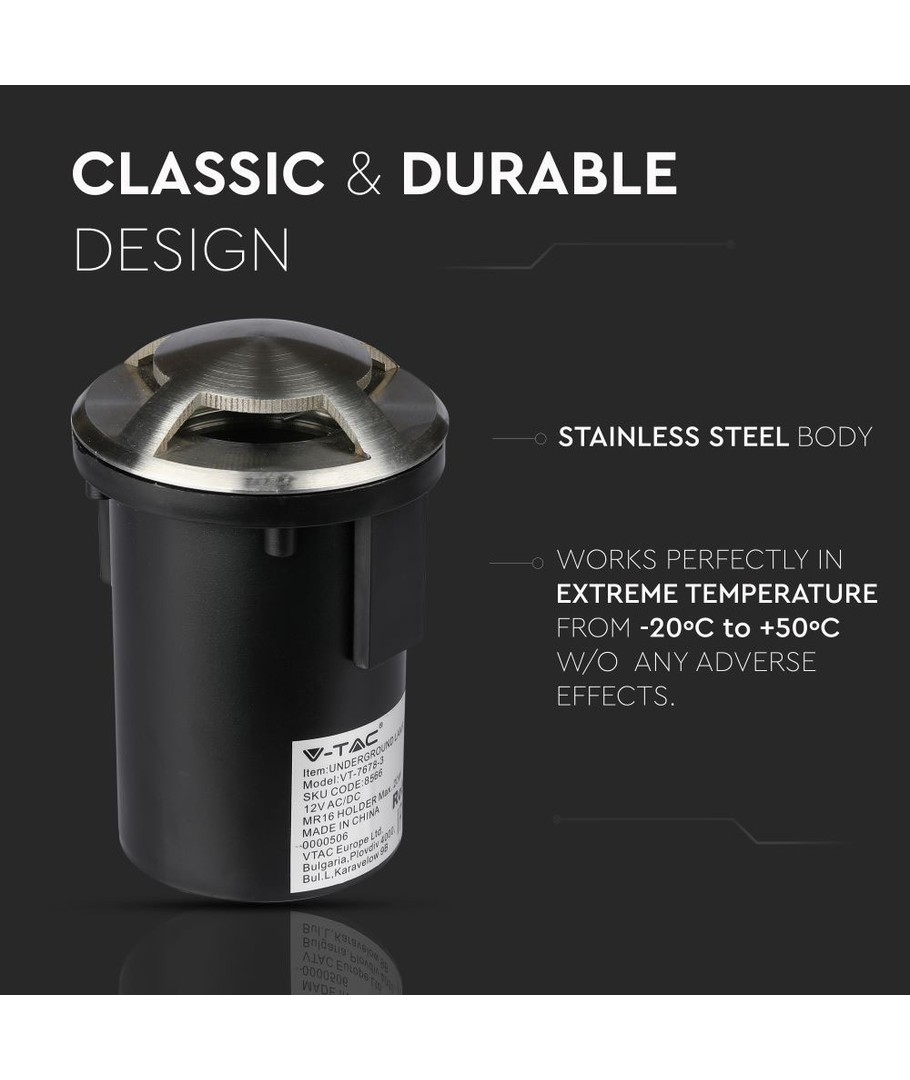 Lampen er en del av V-Tac Pro-serien, som er kjent for høy kvalitet og holdbarhet, noe som understøttes av en 3 års produsentgaranti. Den er spesielt utviklet for å tåle krevende utendørsforhold, og IP67-klassifiseringen sikrer at lampen er godt beskyttet mot støv og vannsprut.