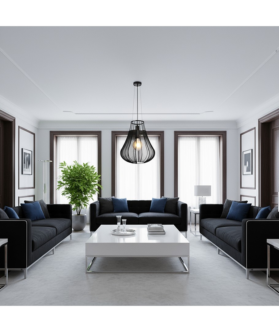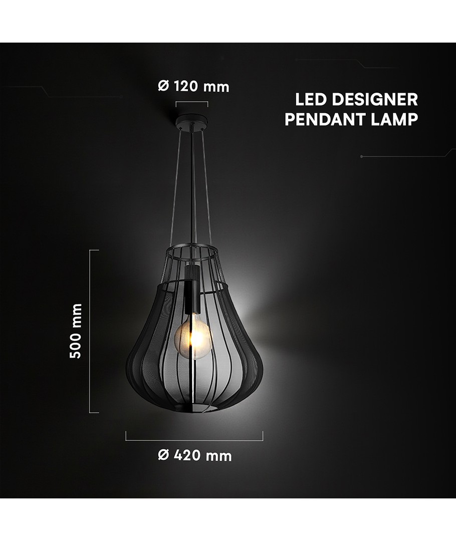 420x500 mm VT-89010 hengelampe E27 - dekorativ belysning med en matt sort finish for moderne interiør.