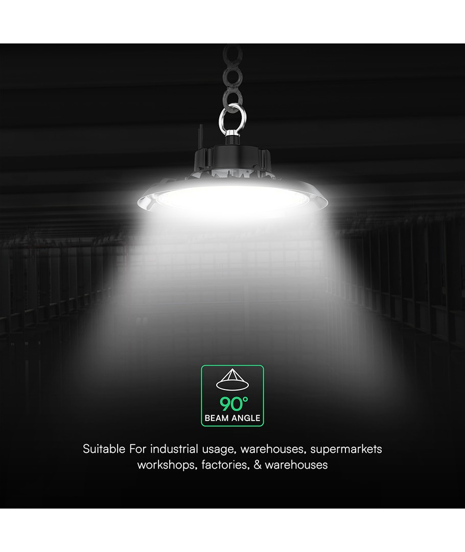 Oppdag den kraftfulle og effektive VT-91102 LED UFO highbay, designet for å møte selv de mest krevende belysningsbehov. Med en effekt på 100W og en lysstyrke på 13500 lumen, leverer denne highbay-en et sterkt lys med en høy lysspredning på 90 grader, noe som sikrer en jevn fordeling av lyset i ditt arbeidsmiljø.