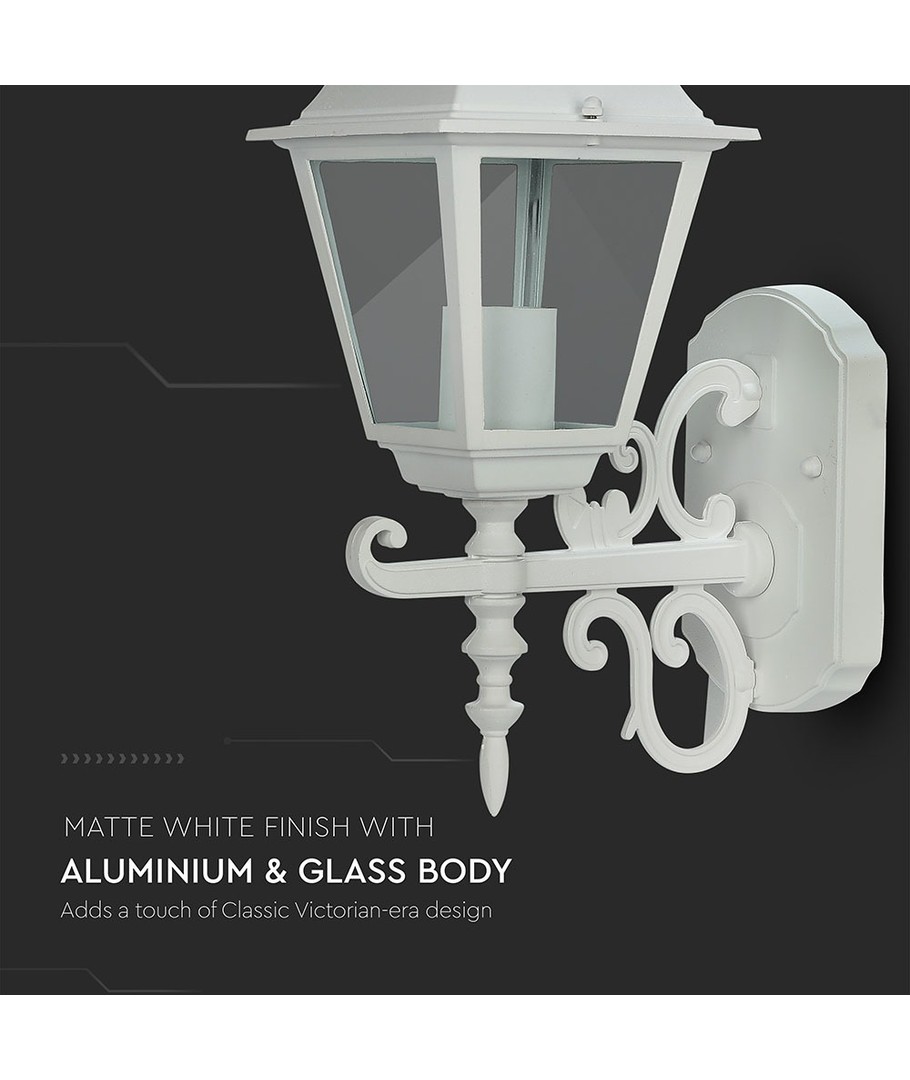 Vt-760 vegglampe E27 - liten, matt hvit (oppad) er den ideelle løsningen for stilfull og funksjonell utendørsbelysning.