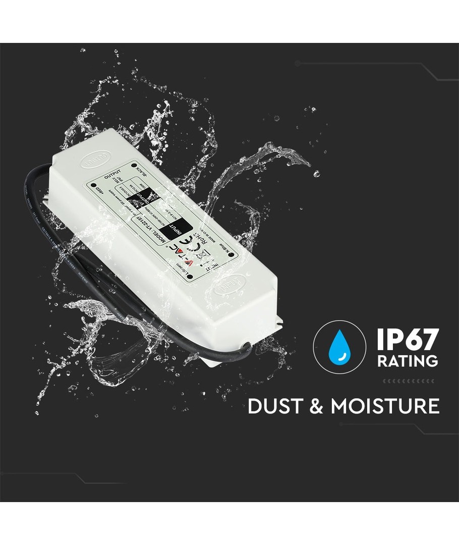 Dette produktet er ideelt for ulike typer LED-installasjoner, både innendørs og utendørs. Den IP67-klassifiserte beskyttelsen gjør den perfekt for områder som krever robust og sikker strømforsyning i variert miljø, uten bekymringer for støv og sprut.