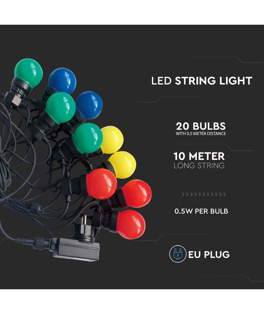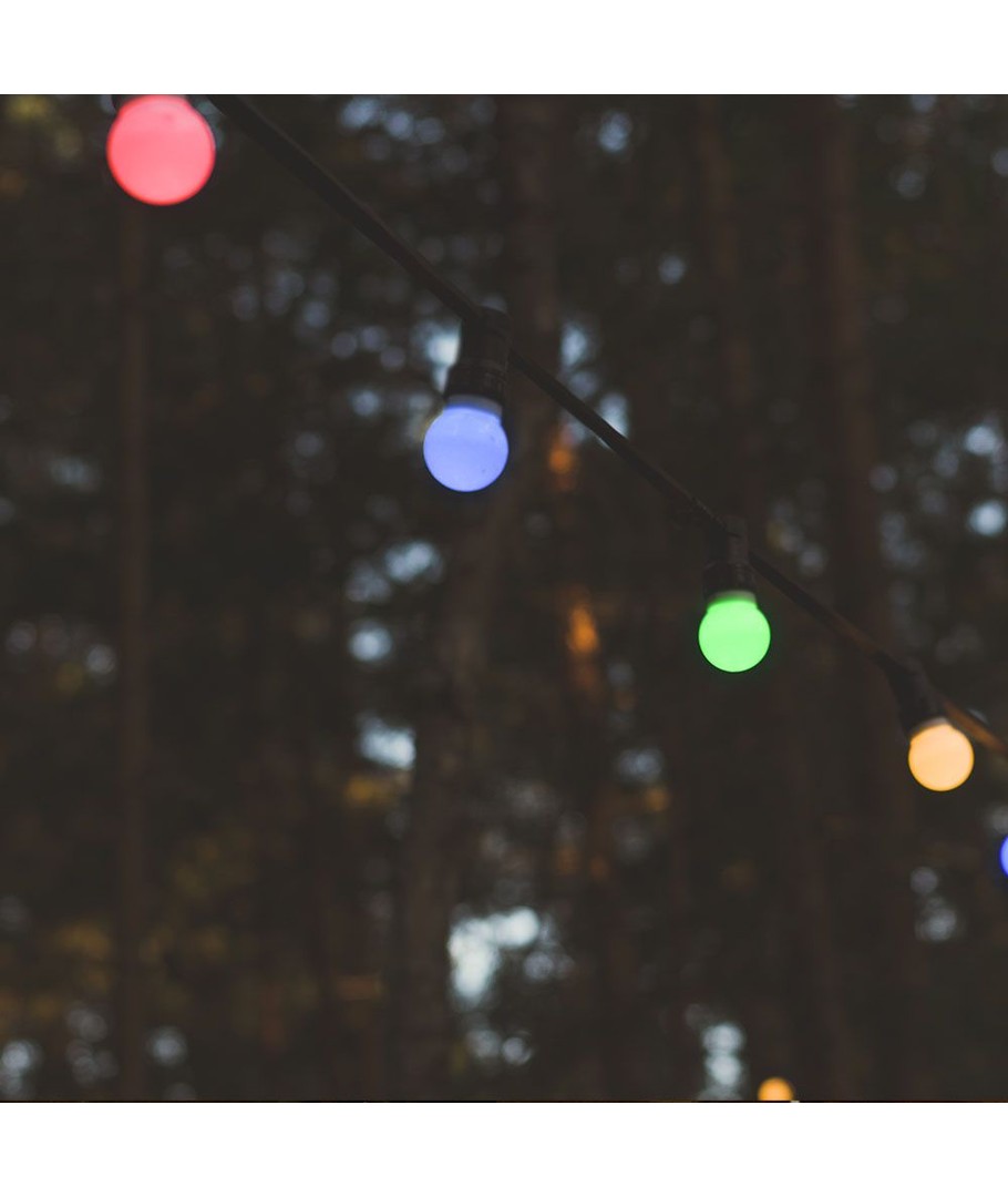 Legg til et magisk preg på uteområdet ditt med denne fargerike LED lyskjeden. Med sine 20 pærer og 10 meter lengde, gir den en fantastisk belysning for enhver anledning.