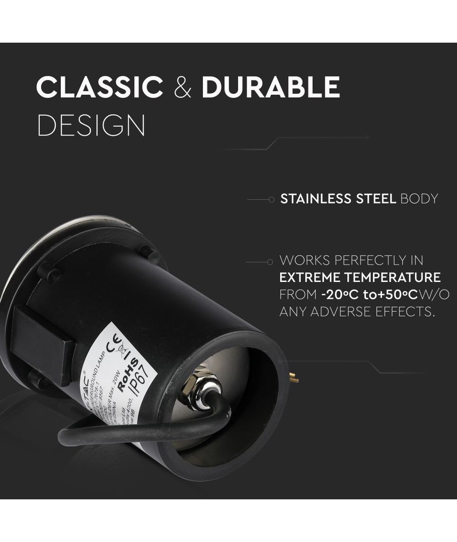Vt-7678-1 MR16 nedgravningsspotlampe 12V - IP67 er en holdbar og effektiv belysningsløsning designet for utendørs bruk.
