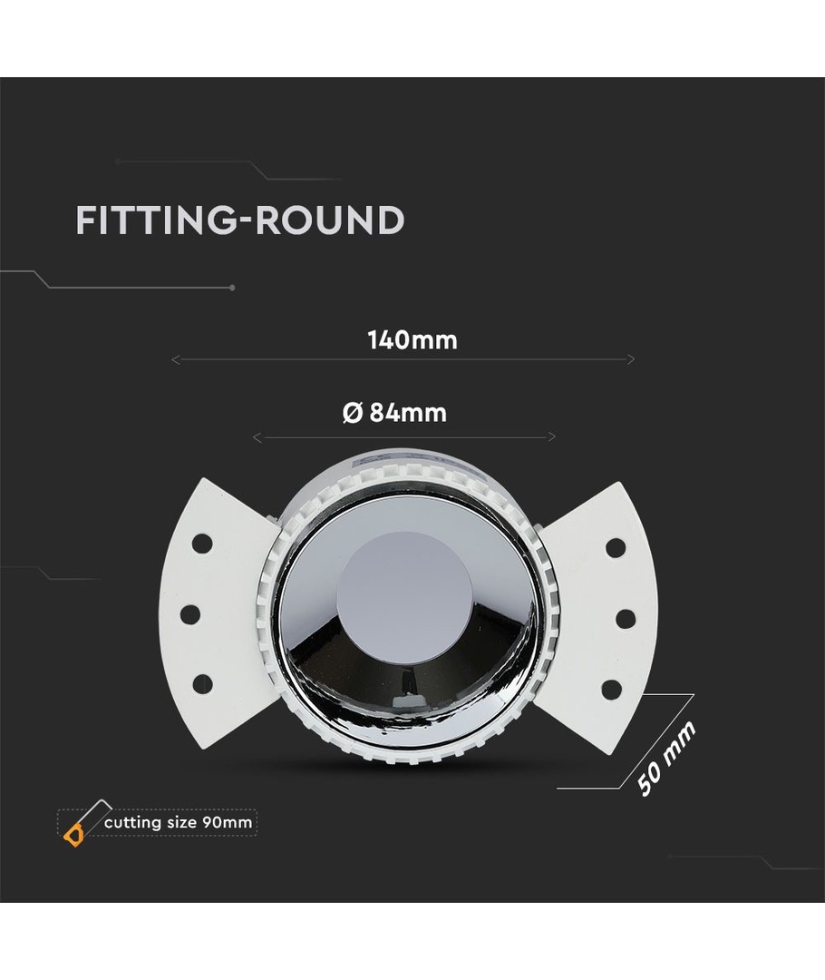 Med en total dimensjon på 90 mm, er denne lampen designet for å passe i eksisterende oppsett med en hullstørrelse på 85 mm. Dette gjør installasjonen enkel og praktisk, ideell for oppgradering av interiørbelysning.