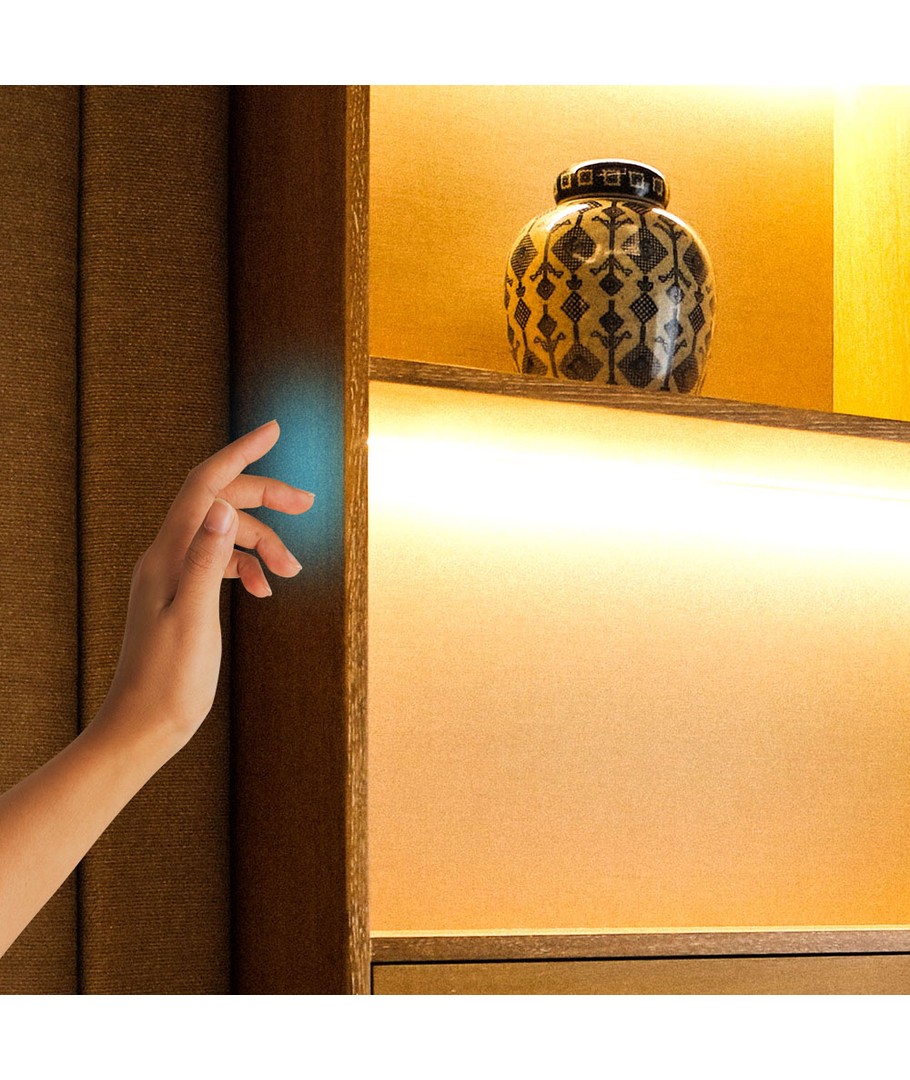 Vt-2412 skjult berørings-dimmer er en innovativ bryter for LED-lysbånd, som leveres i en stilren hvit farge.