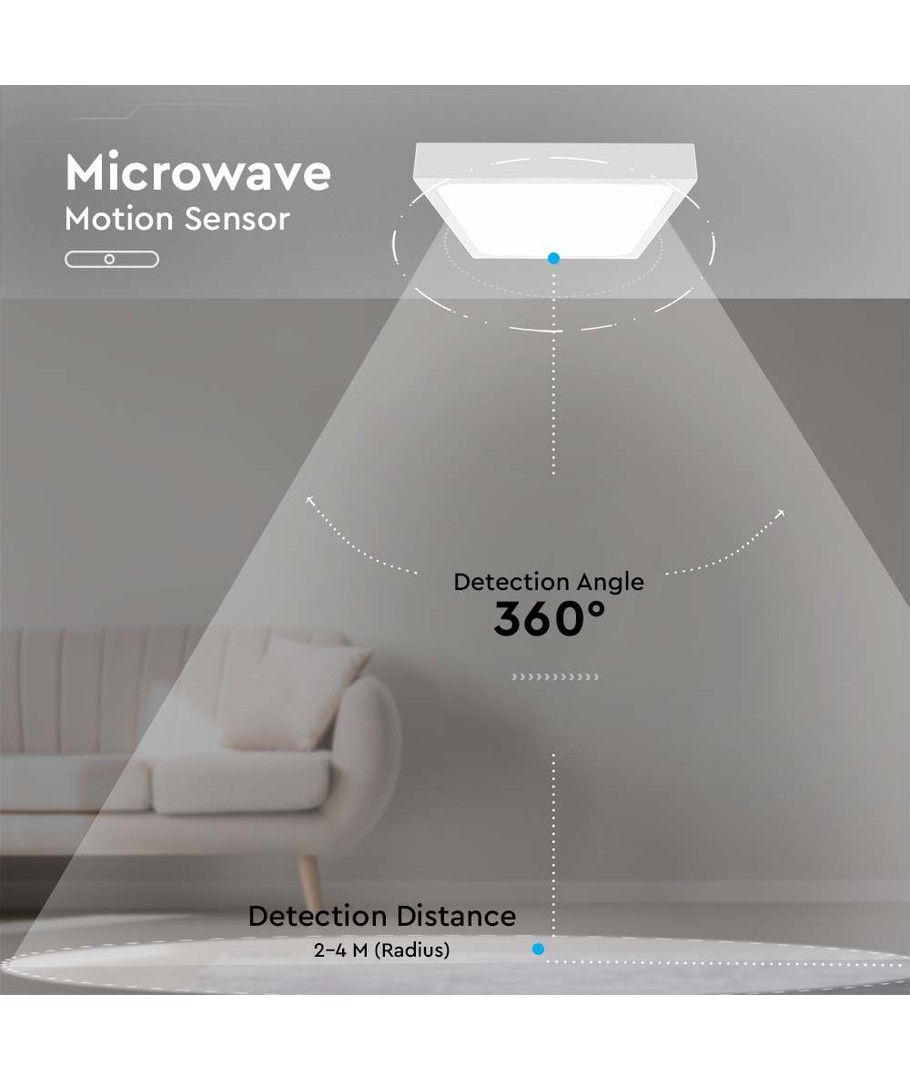 - Sensorteknologi: Integrert mikrobølgesensor med en rekkevidde på 2-4 meter.