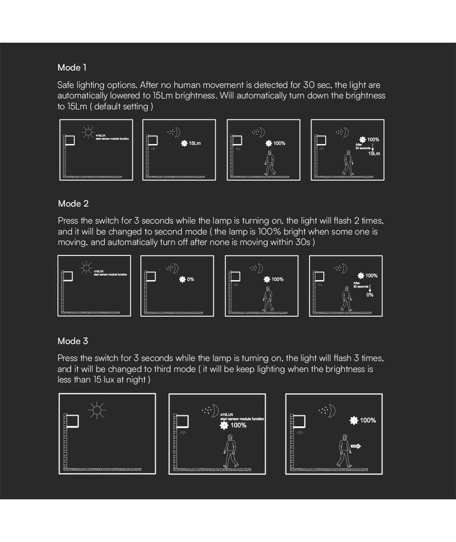 - Sensor: Infrarød sensor med en vinkel på 120° for presis deteksjon.