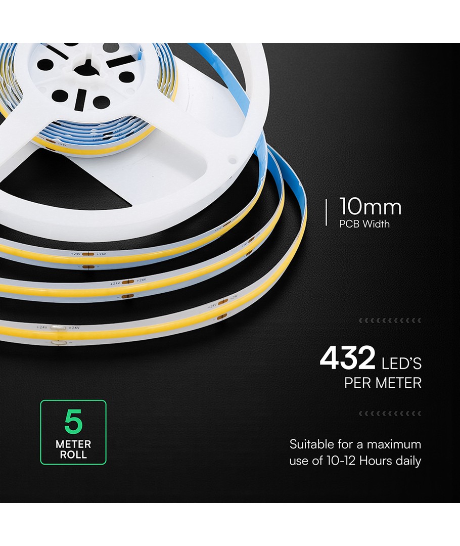 421 VT-COB LED lyslist er det ideelle valget for energieffektiv belysning i kald hvit farge.- Lysstyrke: Høy lysstyrke med en fargetemperatur på 6500K, som gir en skarp kald hvit belysning.