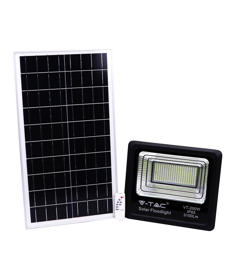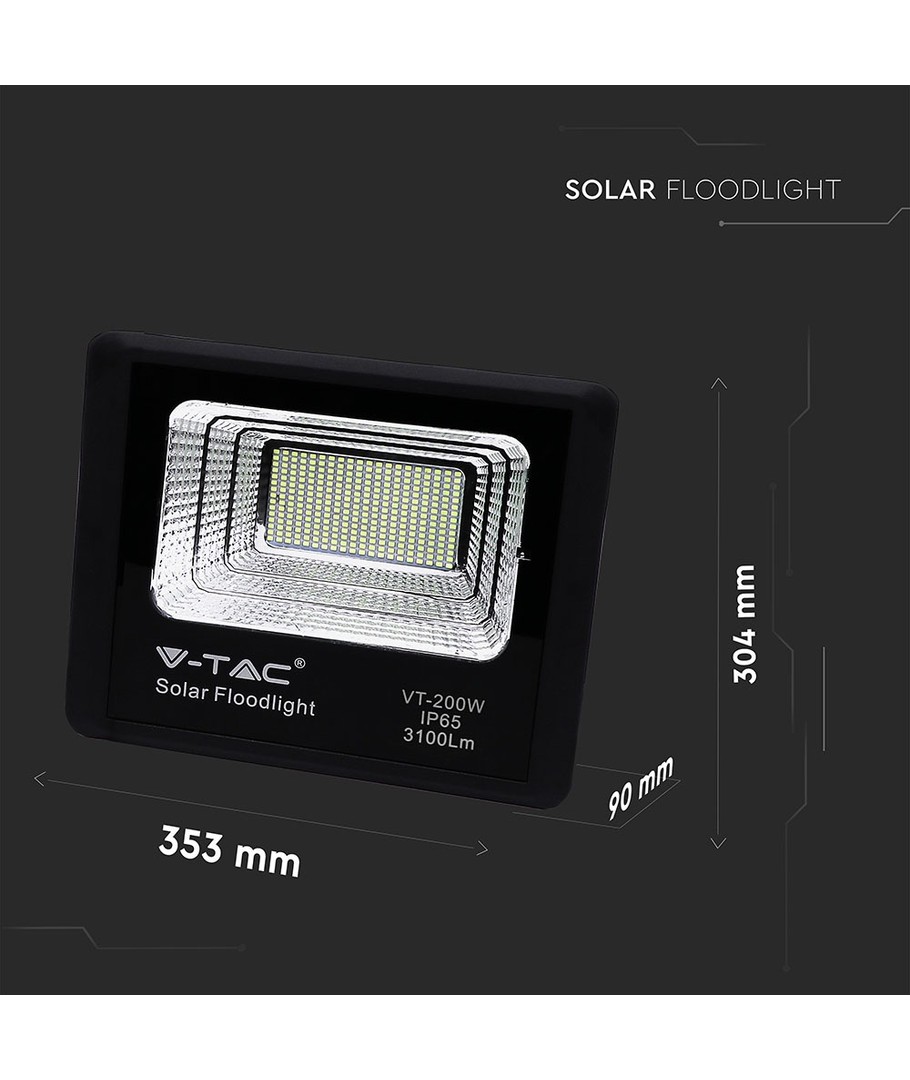 V-Tac 200W Solcelle LED lyskaster er en kraftfull og energieffektiv løsning for utendørs belysning.- Lysstyrke: 3100 lumen sikrer en kraftig belysning.