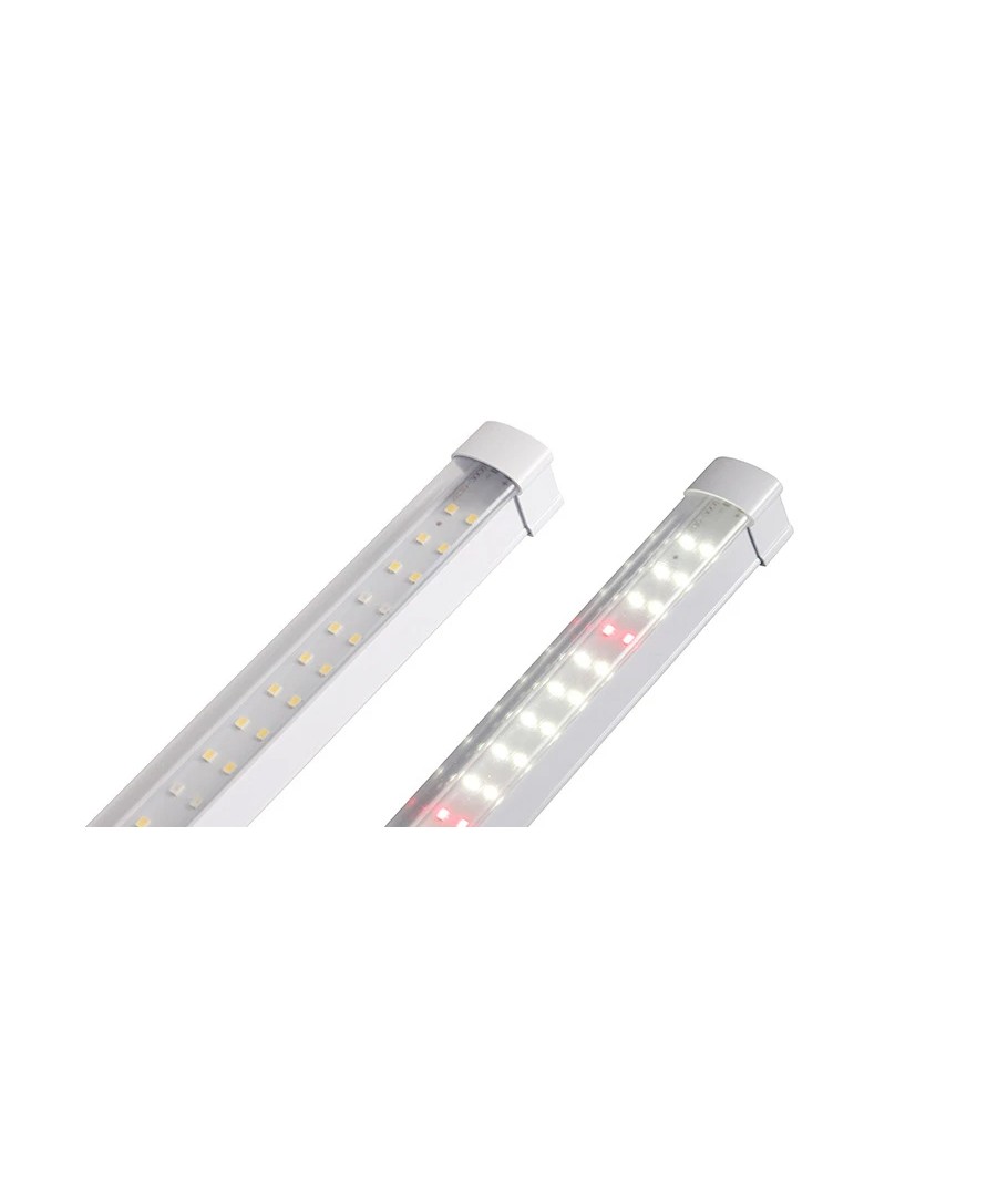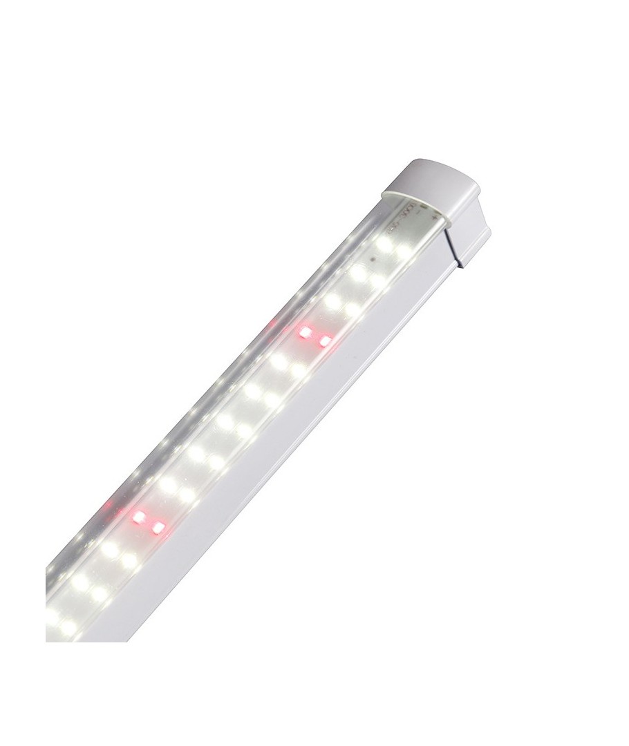 Armaturen har en høy spredning på 130 grader, noe som sikrer en jevn fordeling av lyset, hvilket er avgjørende for å optimalisere plantenes vekstprosesser. Den er dimensjonert til 1200 x 25 x 25 mm, noe som gir et slankt og plassbesparende design.